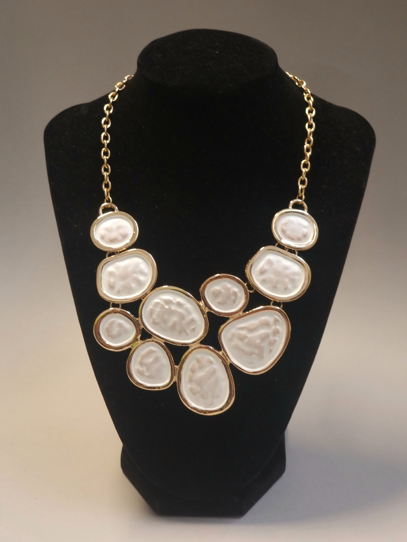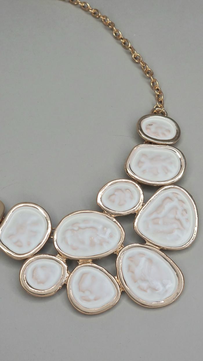 • Γυναικείο κολιέ με ανάγλυφες πέτρες λευκό και απαλό ρόζ