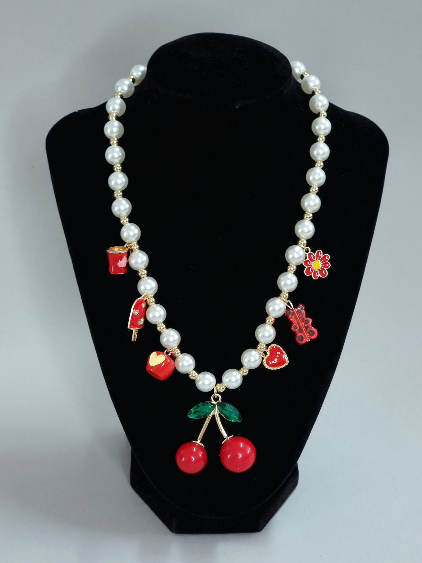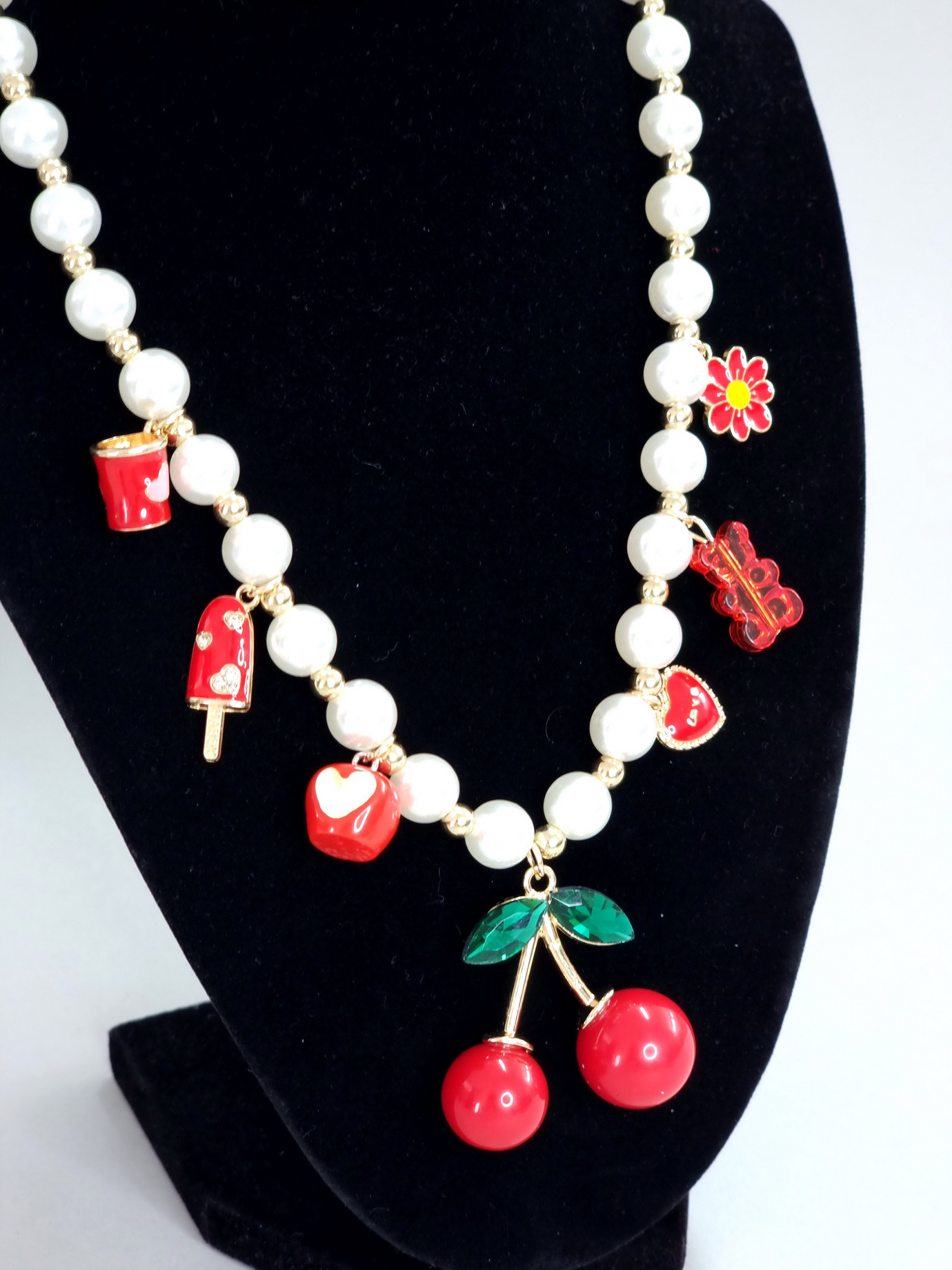 Κολιέ μεγάλες πέρλες καλοκαιρινά charms-Κεράσι