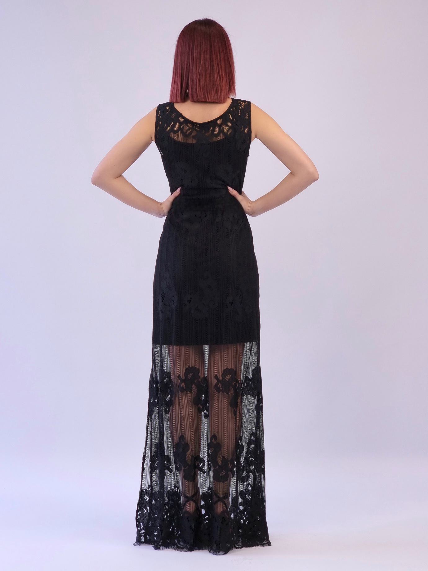 Φόρεμα μάξι με δαντέλα -Μαύρο