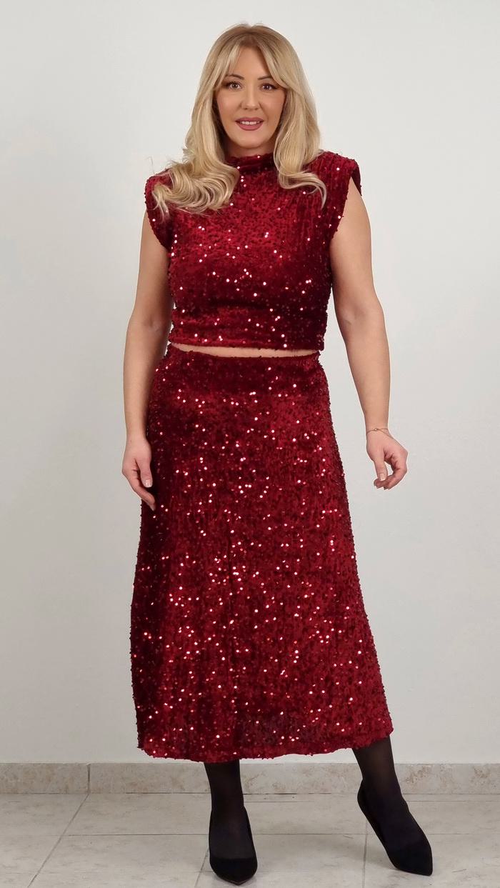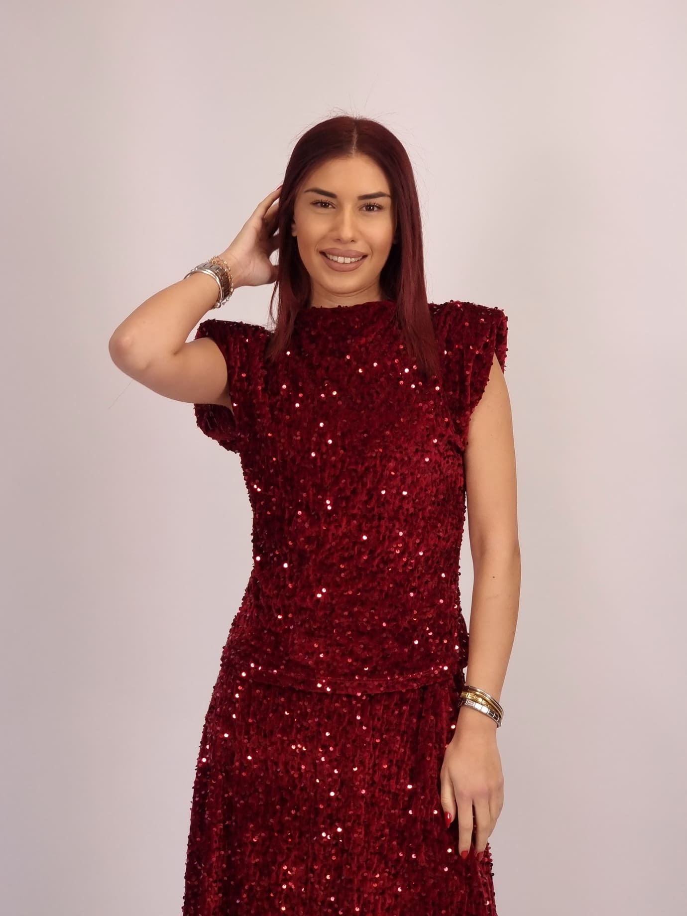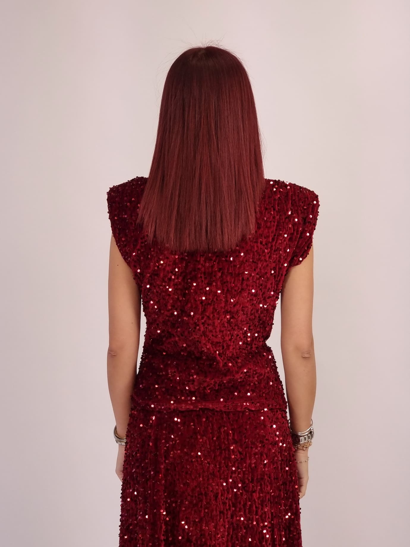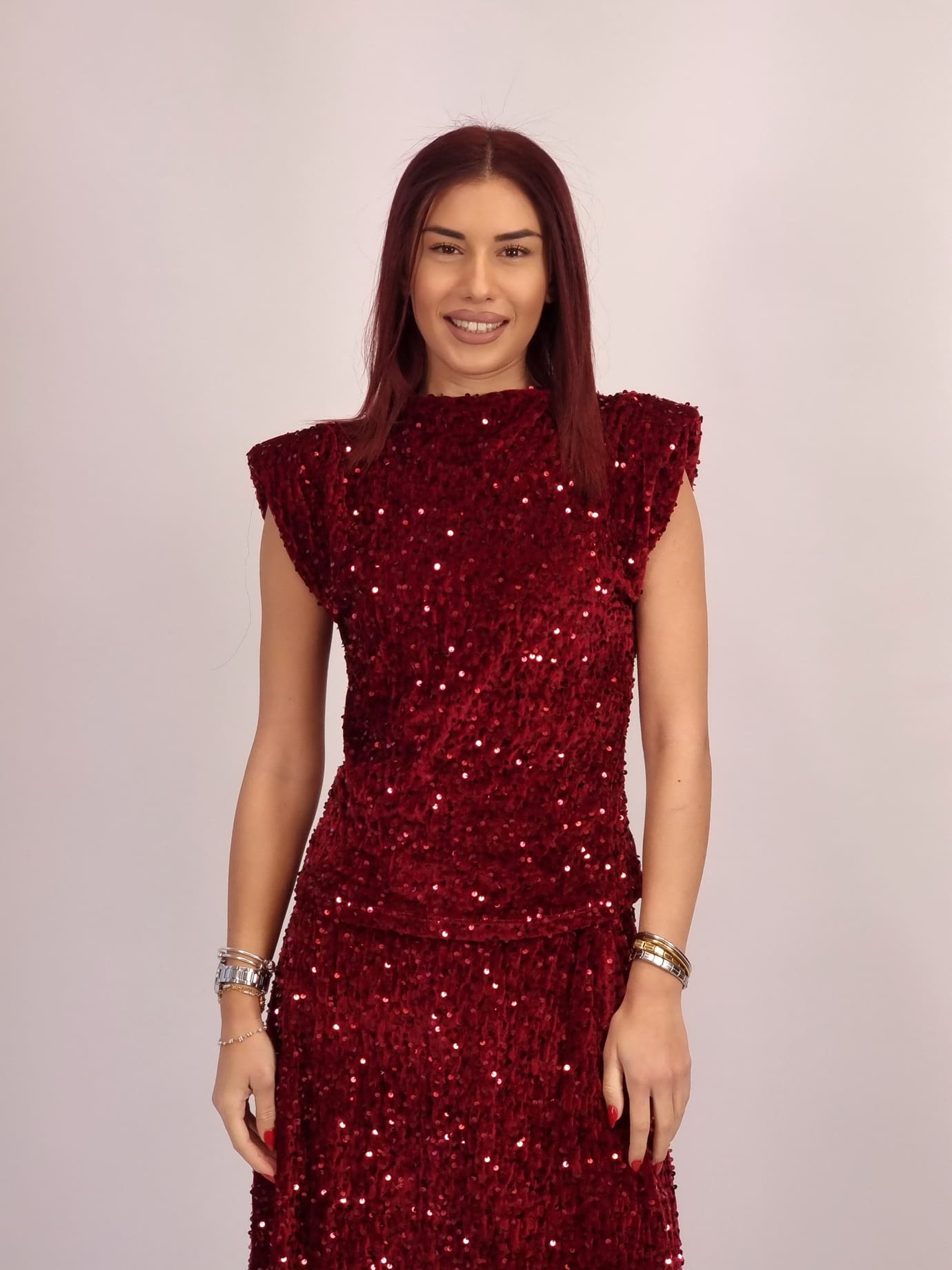 Μπλούζα αμάνικη με παγιέτα-Μπορντό