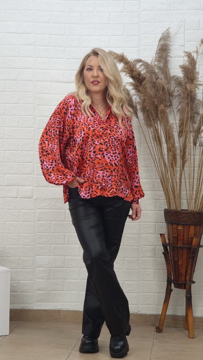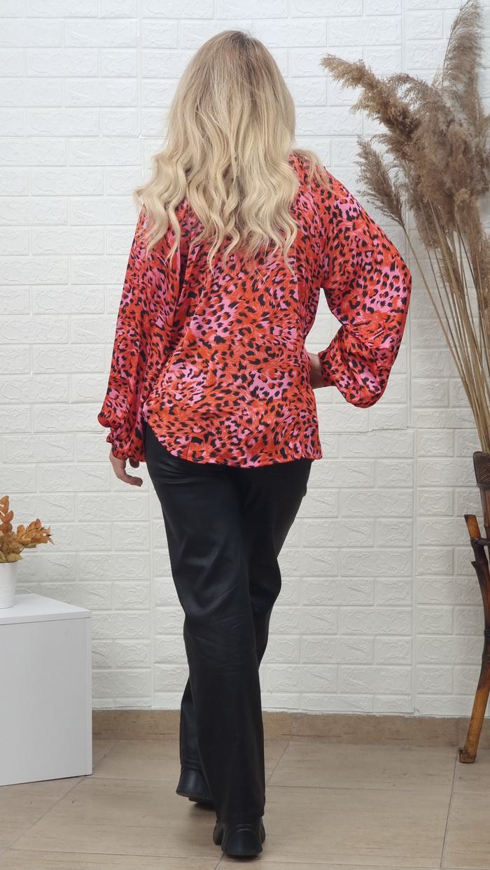 Mπλούζα ασύμμετρη Animal Print-Κοραλί