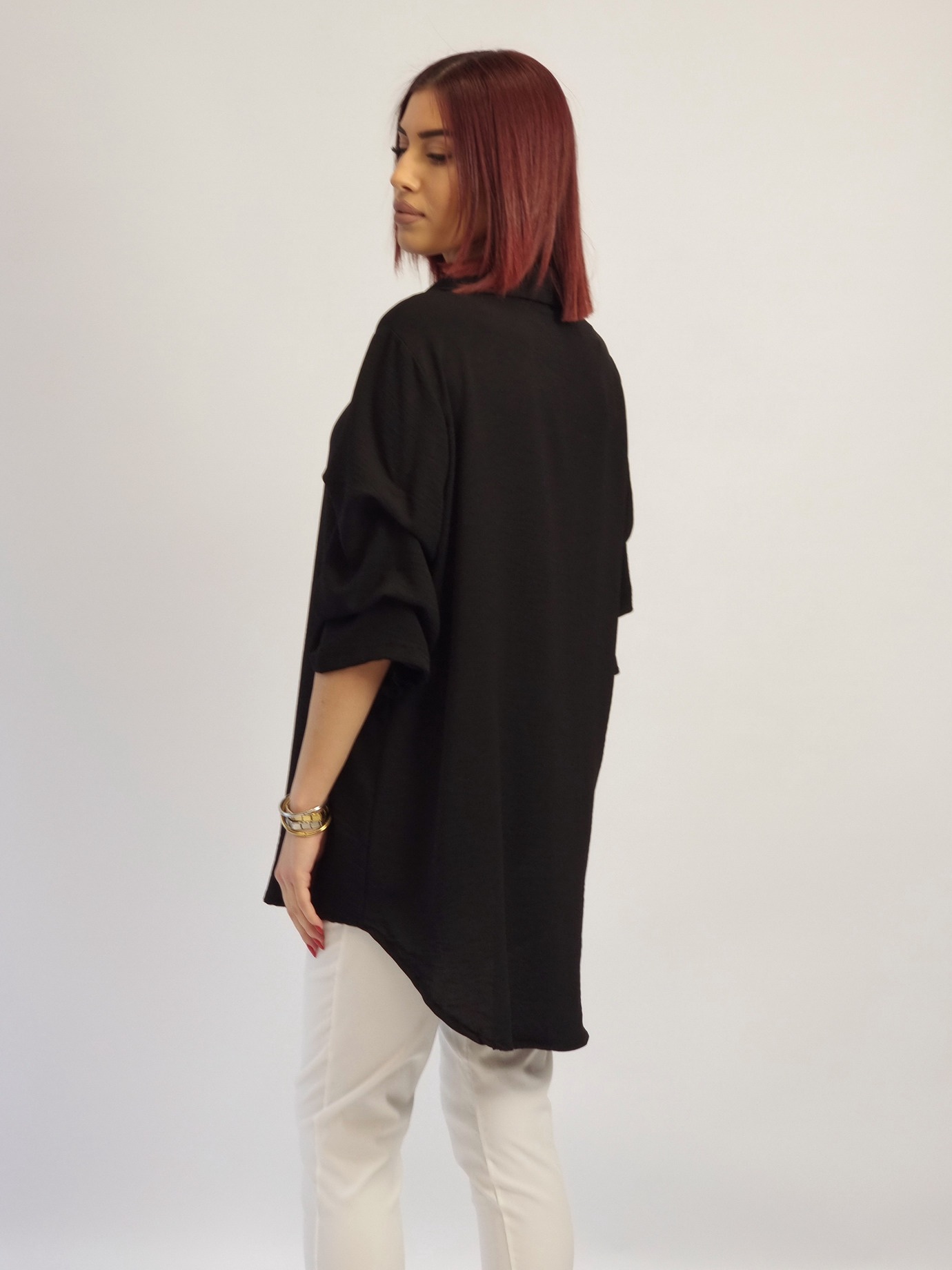Μπλούζα ασύμμετρη σούρα -Μαύρο