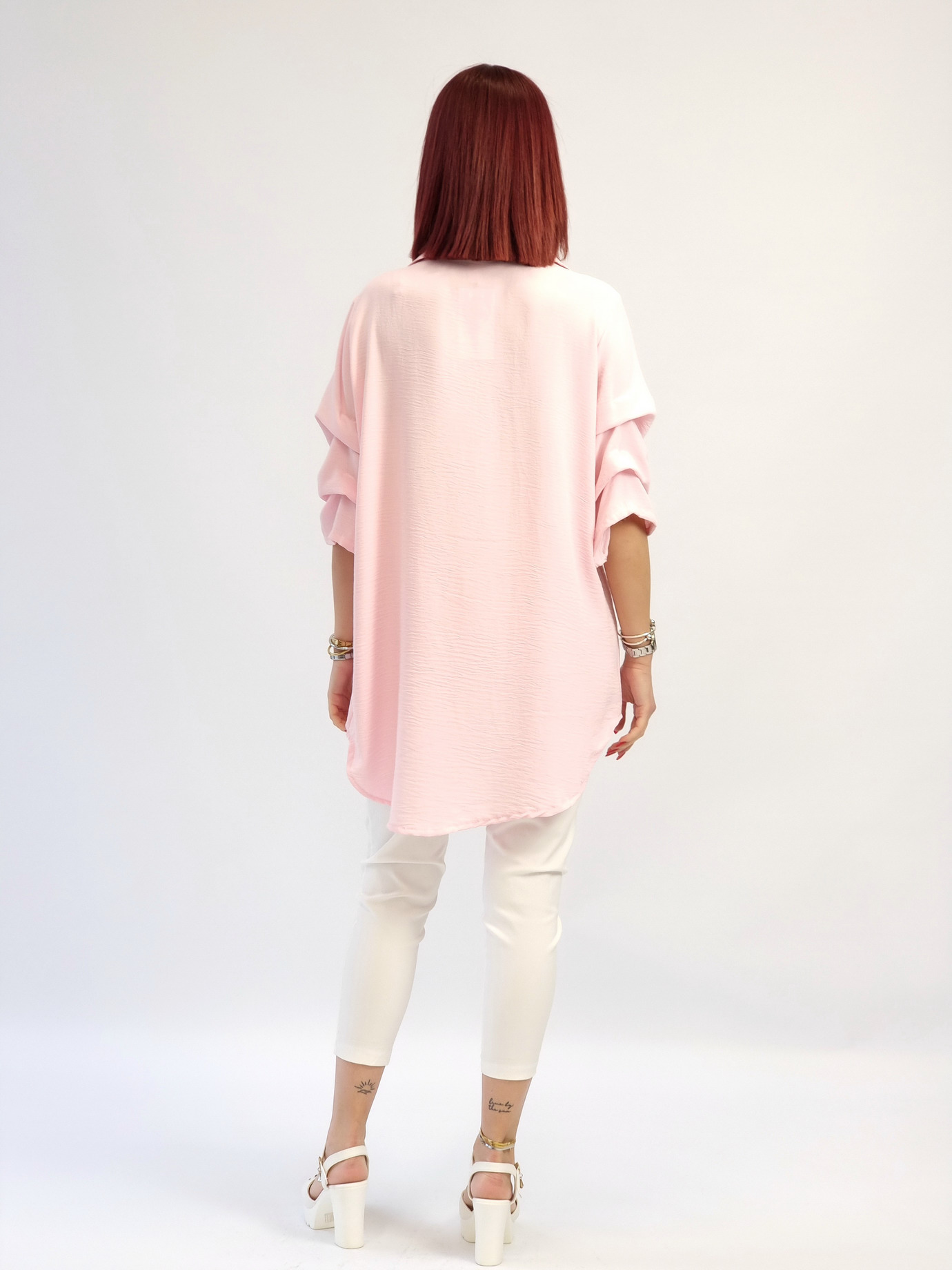 Μπλούζα ασύμμετρη σούρα -Ρόζ