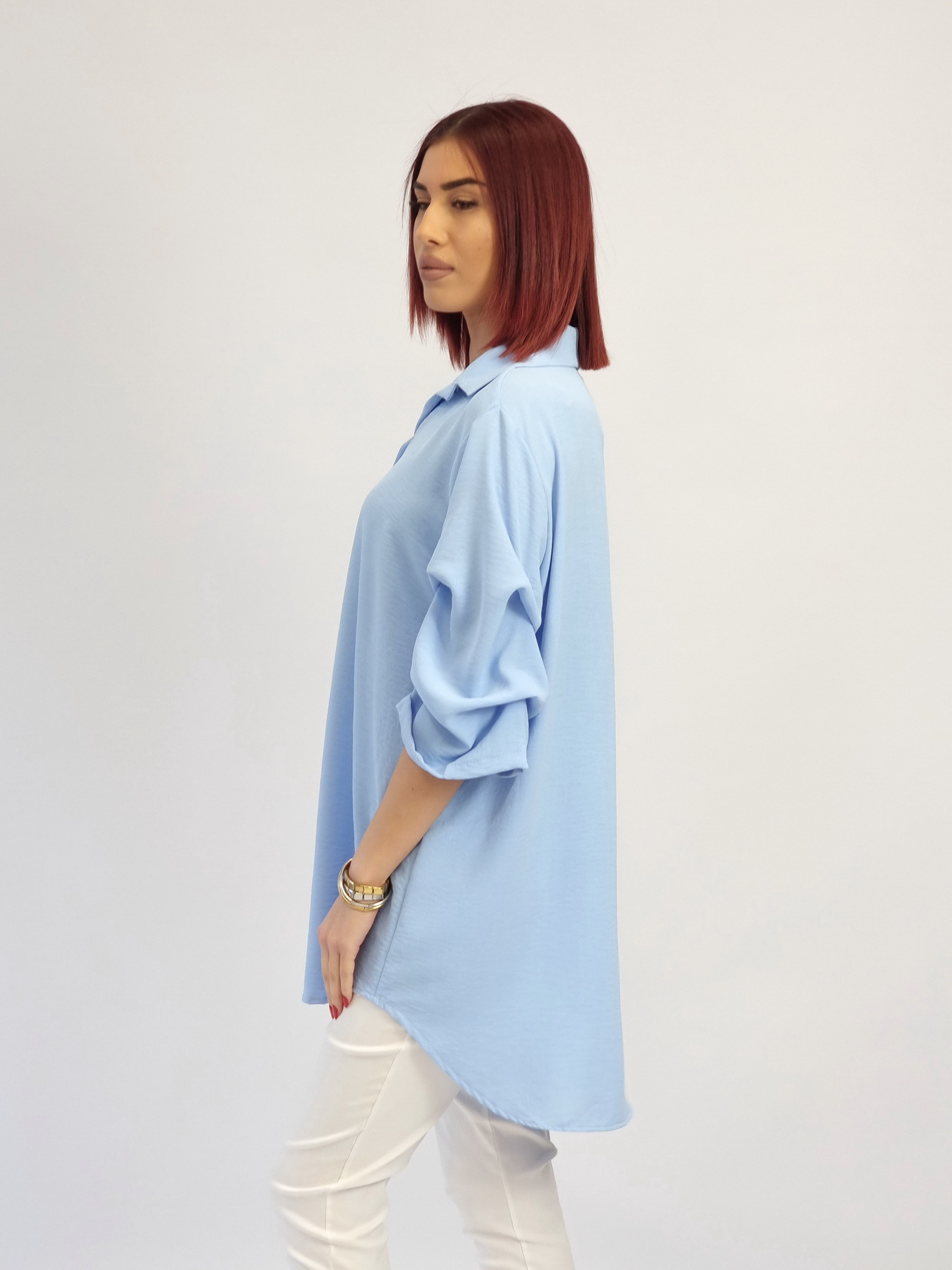 Μπλούζα ασύμμετρη σούρα -Σιέλ