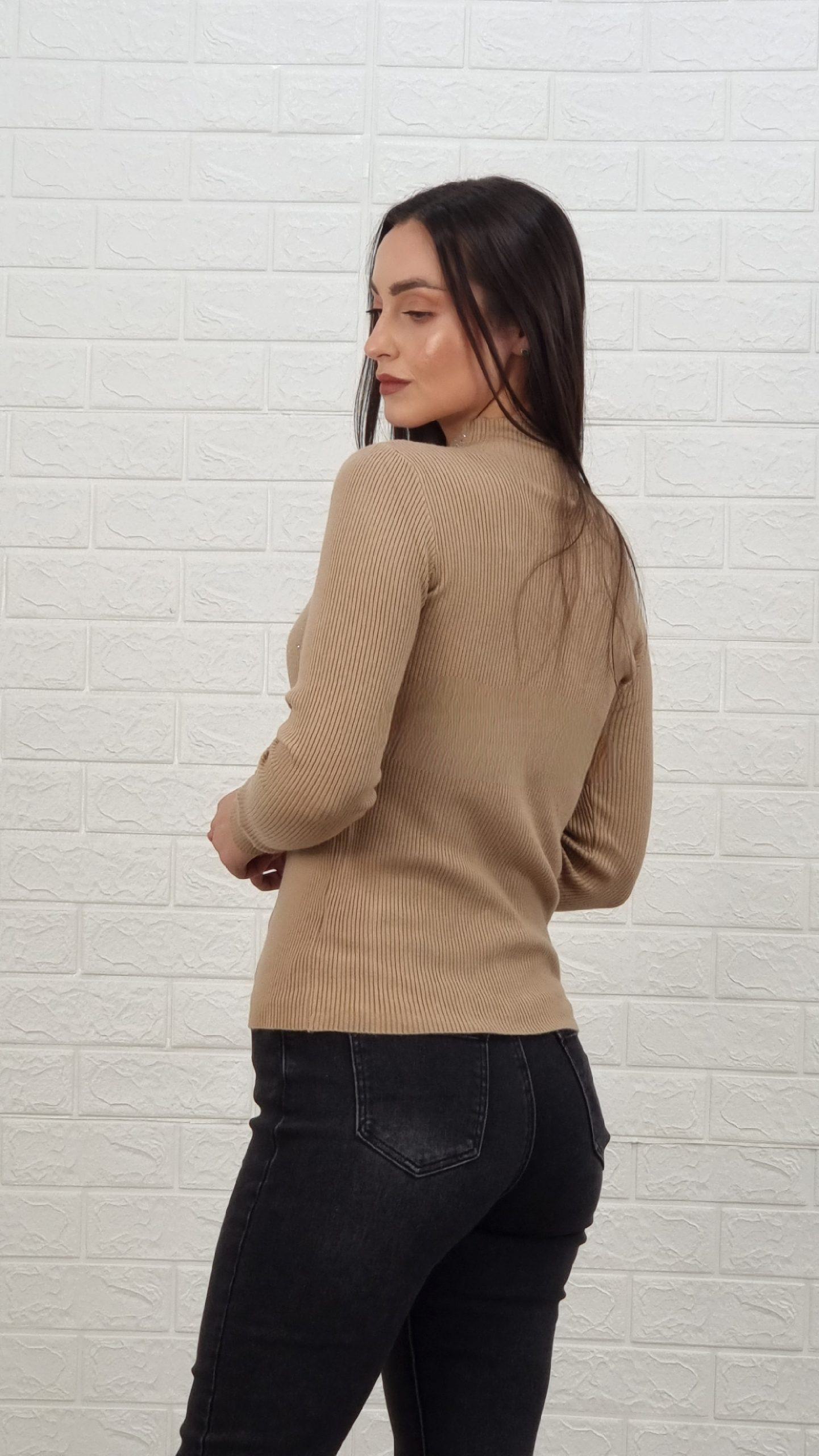 • Χρώμα πούρο μπλούζα ριπ μακρυμάνικη με άνοιγμα και στρας