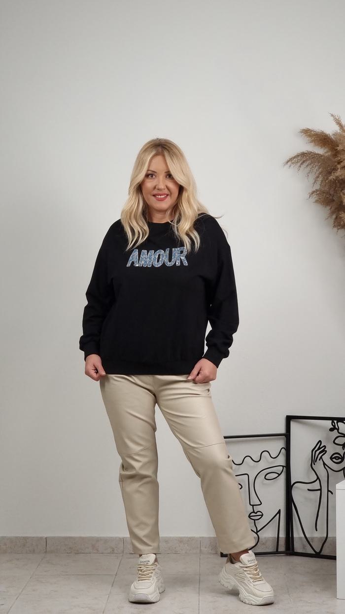 • Mπλούζα βαμβακερή amour μαύρη με παγιέτα στο μπροστινό μέρος