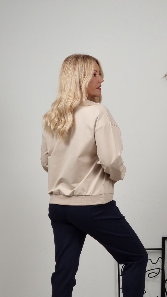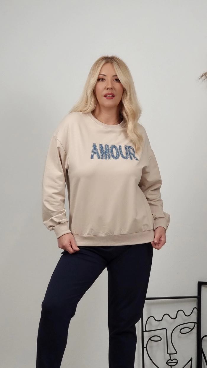 • Mπλούζα βαμβακερή amour μπεζ με παγιέτα στο μπροστινό μέρος
