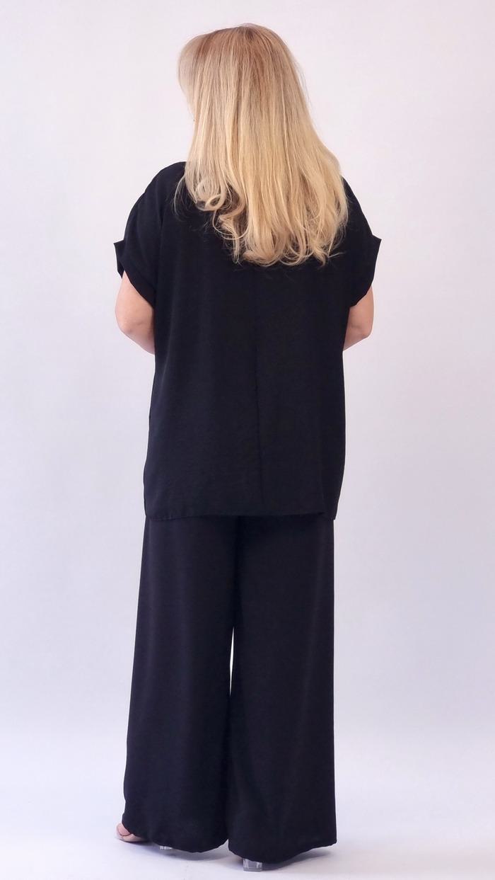 Μαυρή μπλούζα με κοντό μανίκι εχει λεπτομέρεις απο μεταλλικά στοιχεία V λαιμόκοψη και λούρεξ oversized γραμμή Σύνθεση προϊόντος: 60% pol, 35% visc, 5% elast