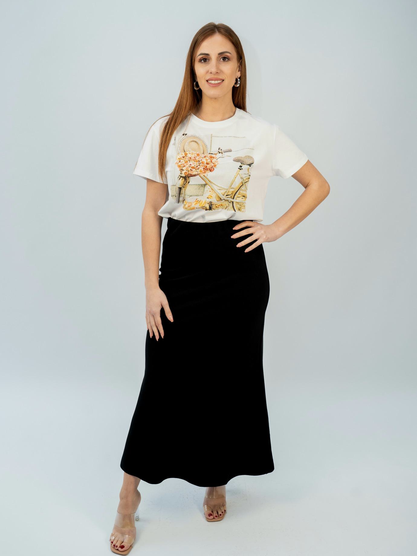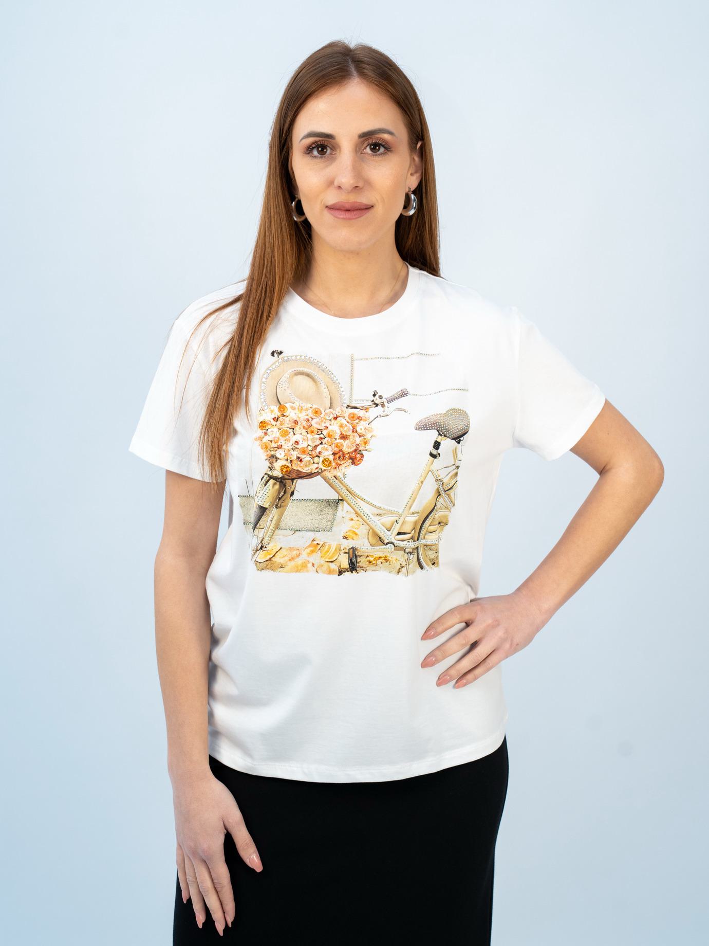 Λευκή μπλούζα βαμβακερό ύφασμα Με τύπωμα ποδήλατο με πορτοκαλί πέρλες και στράς Άνετη γραμμή Σύνθεση προϊόντος: 95% cotton, 5% elast