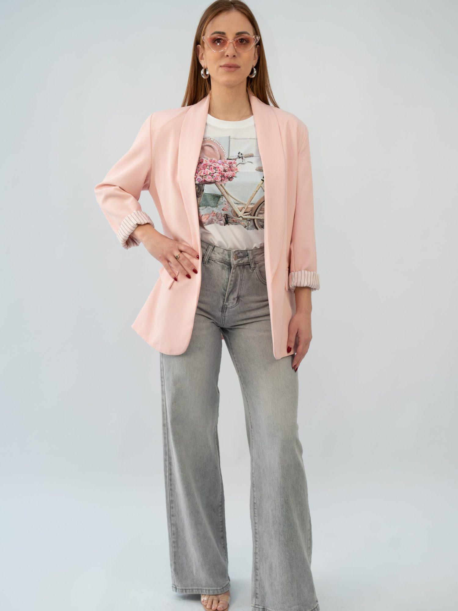 Απαλό ρόζ σακάκι με βάτες και ριγέ φόδρα Κανονική γραμμή Σύνθεση προϊόντος: 95% pol, 5% elast