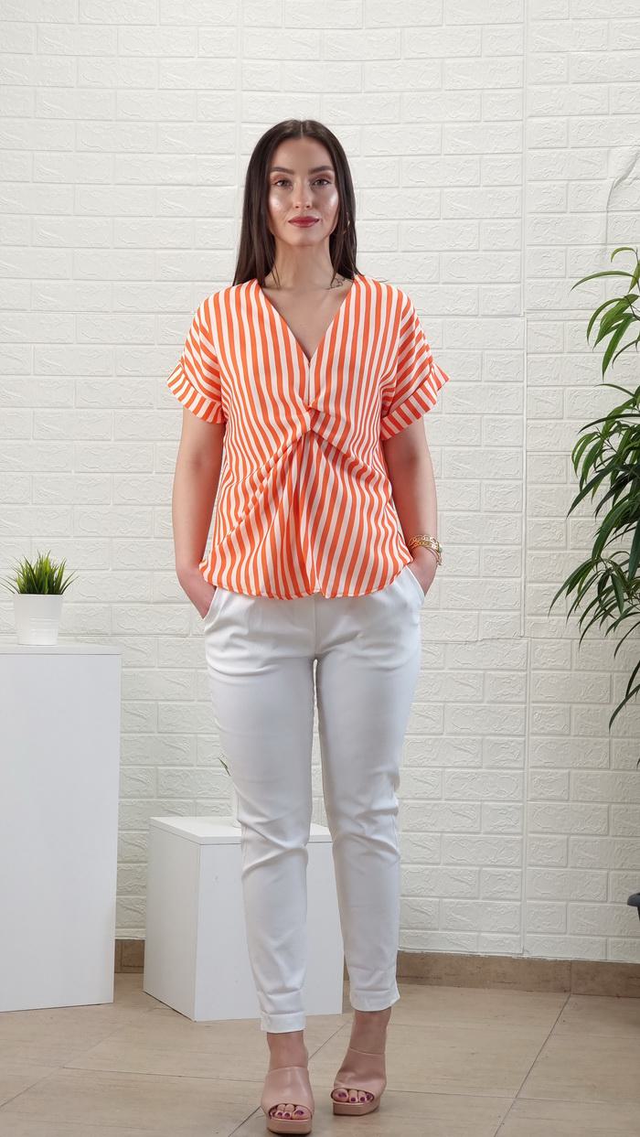 Μπλούζα κοντομάνικη ριγέ-Πορτοκαλί