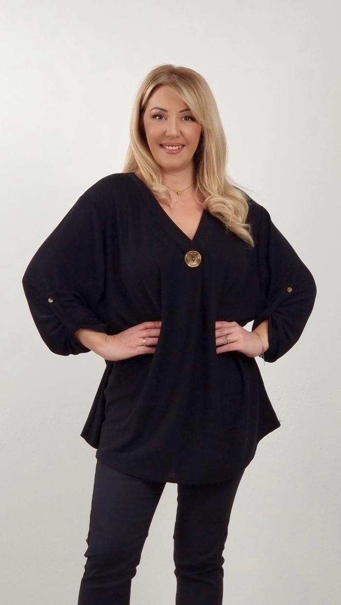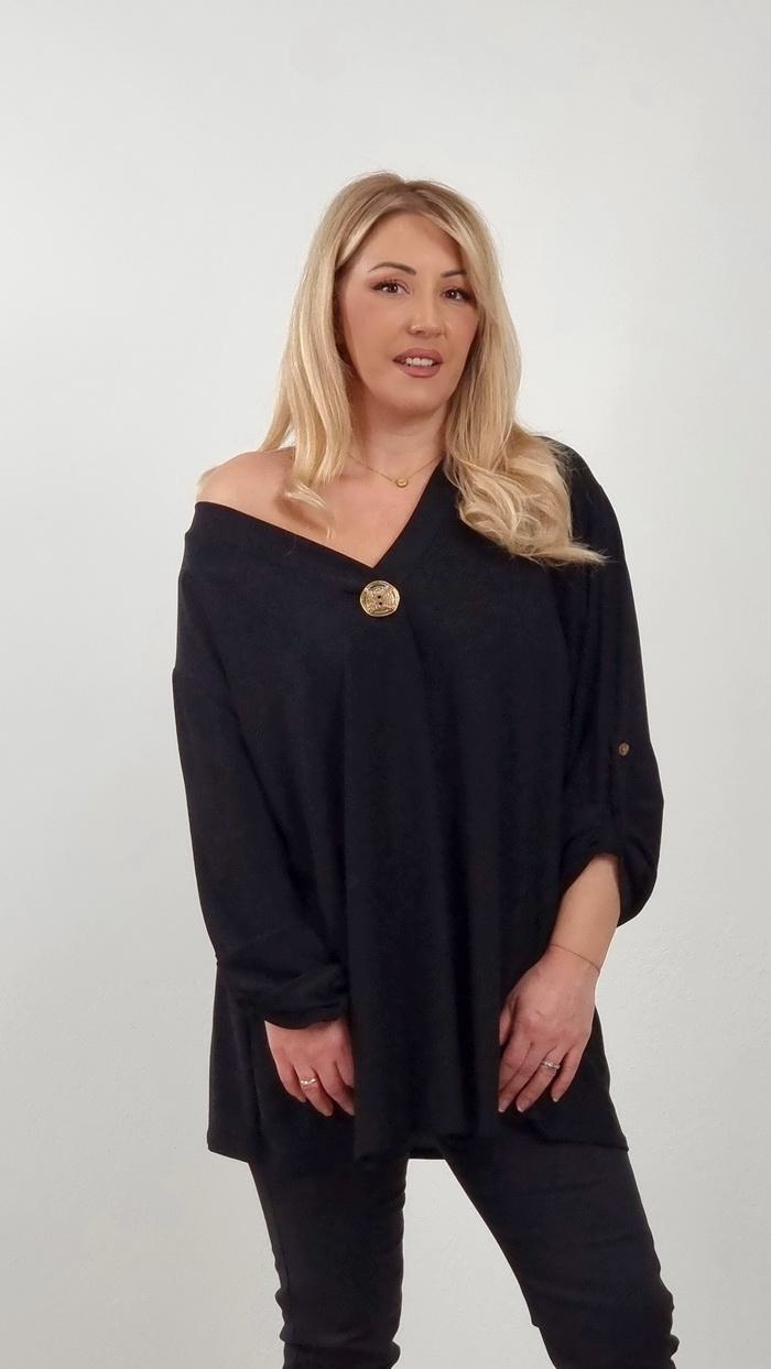 • Μπλούζα lurex με V λαιμόκοψη -Μαύρη