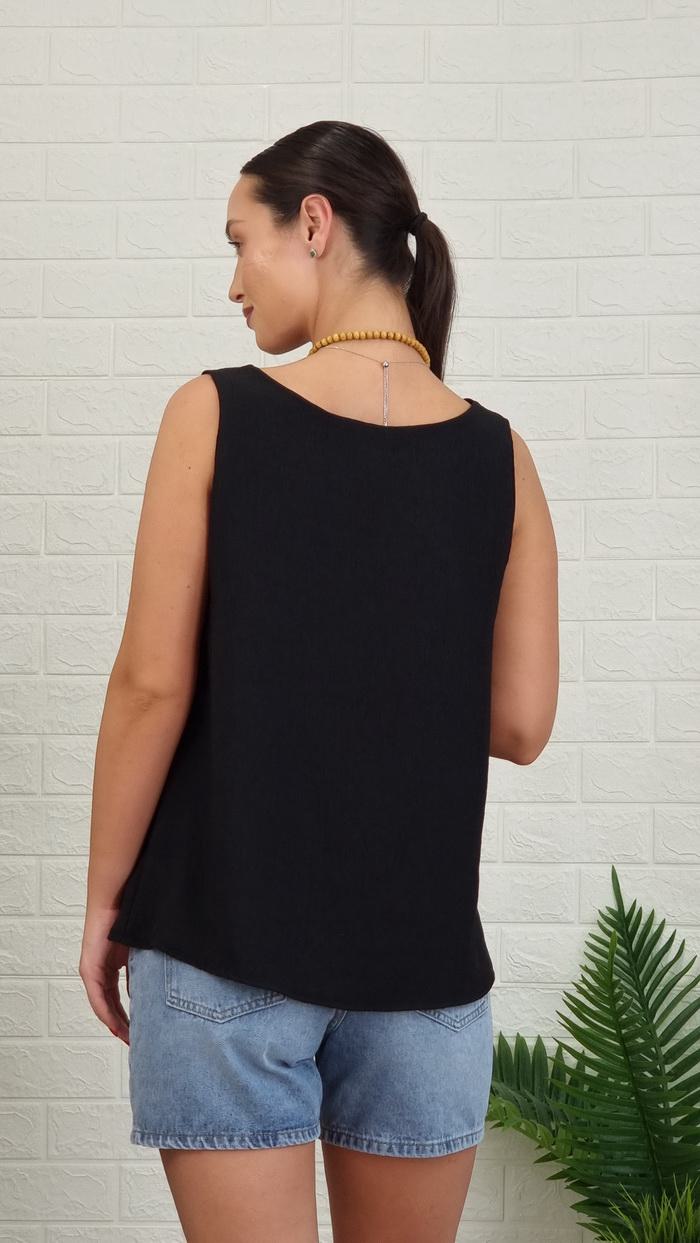 • Μαύρη Μπλούζα αμάνικη με στρογγυλή λαιμόκοψη κανονικό μήκος