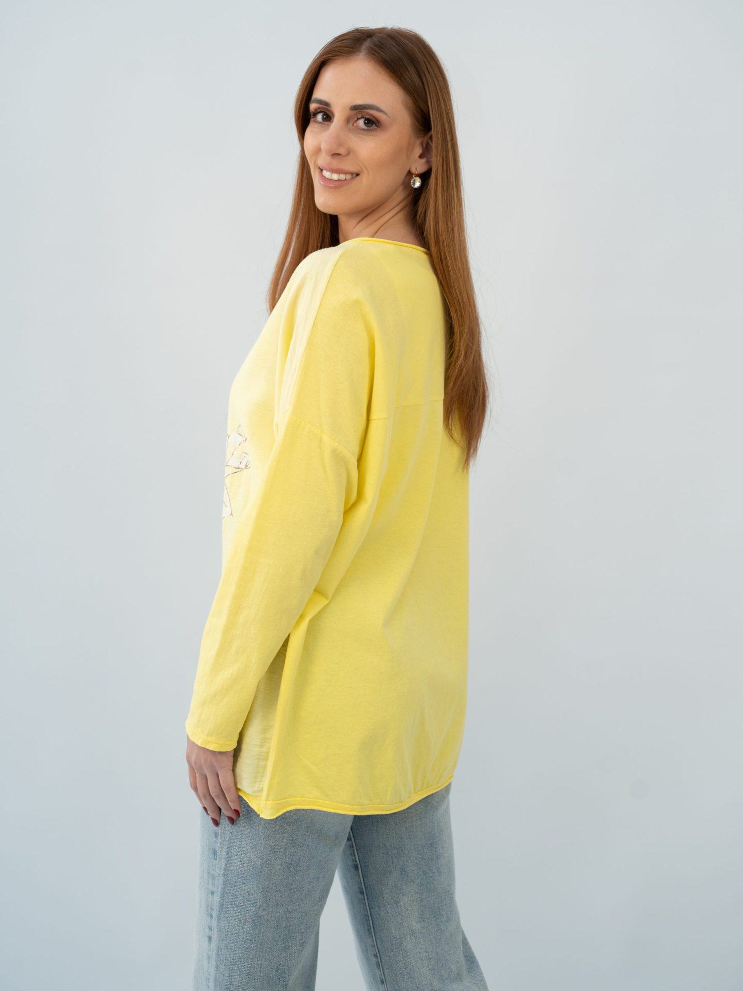 • Κίτρινο βαμβακερή με βισκόζη Μπλούζα μακρυμάνικη,