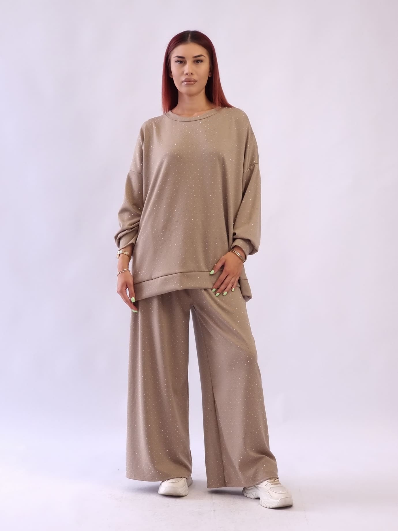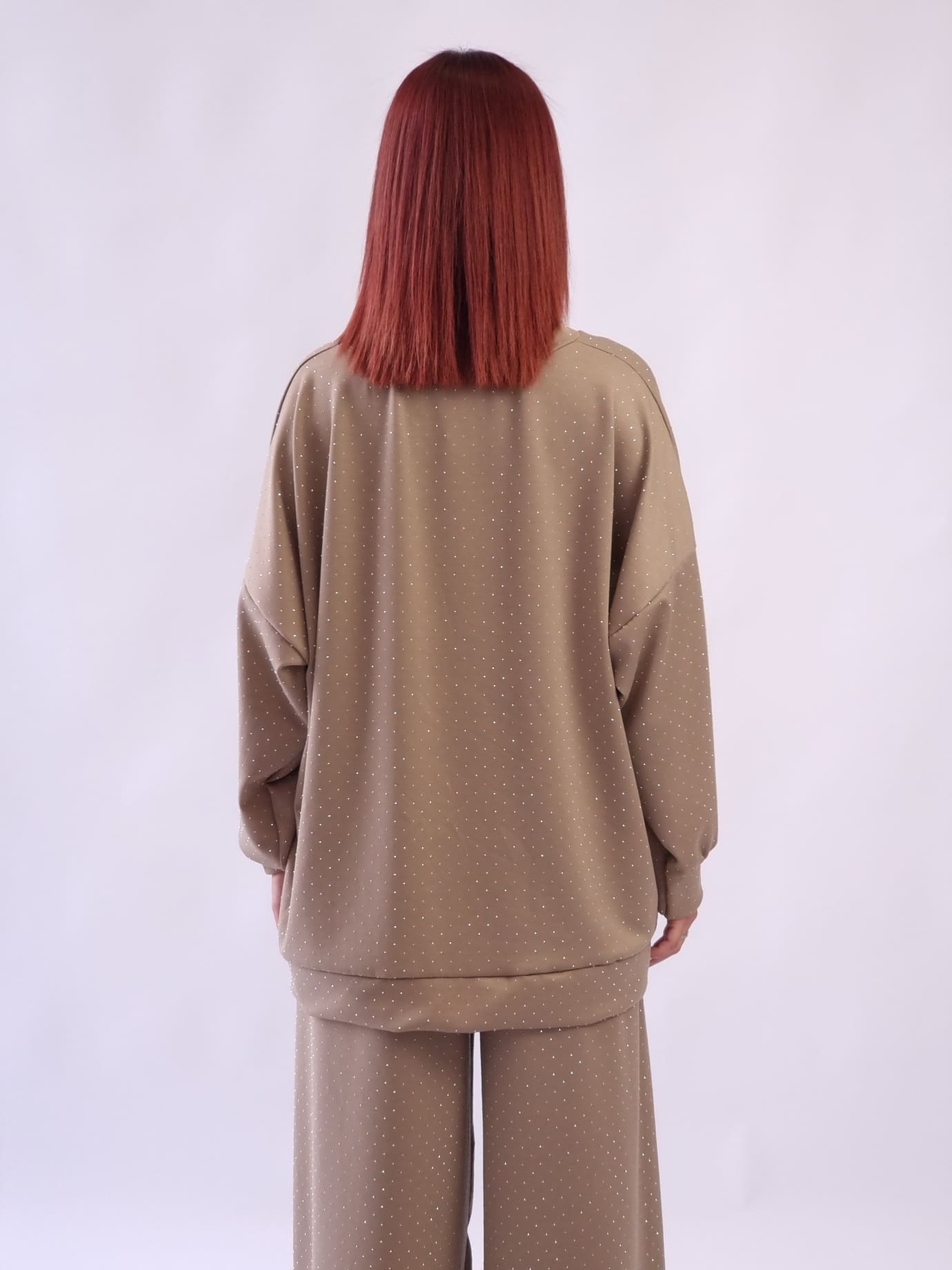 • Γυναικεία μπλούζα με στρας λεπτομέρεια oversized Μπέζ
