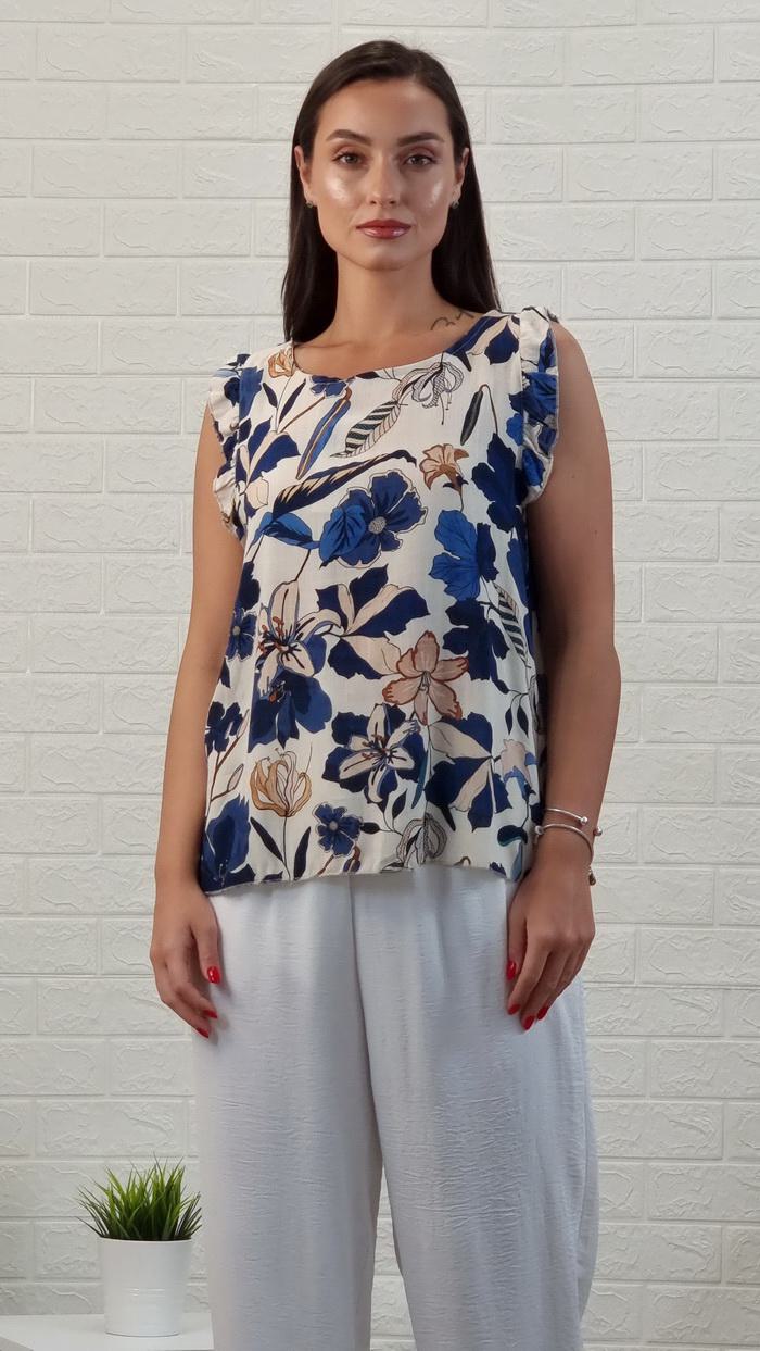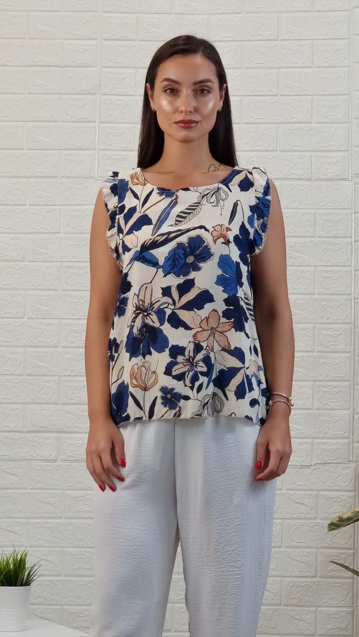 Μπλούζα βολάν αμάνικη φλοράλ-Μπλε