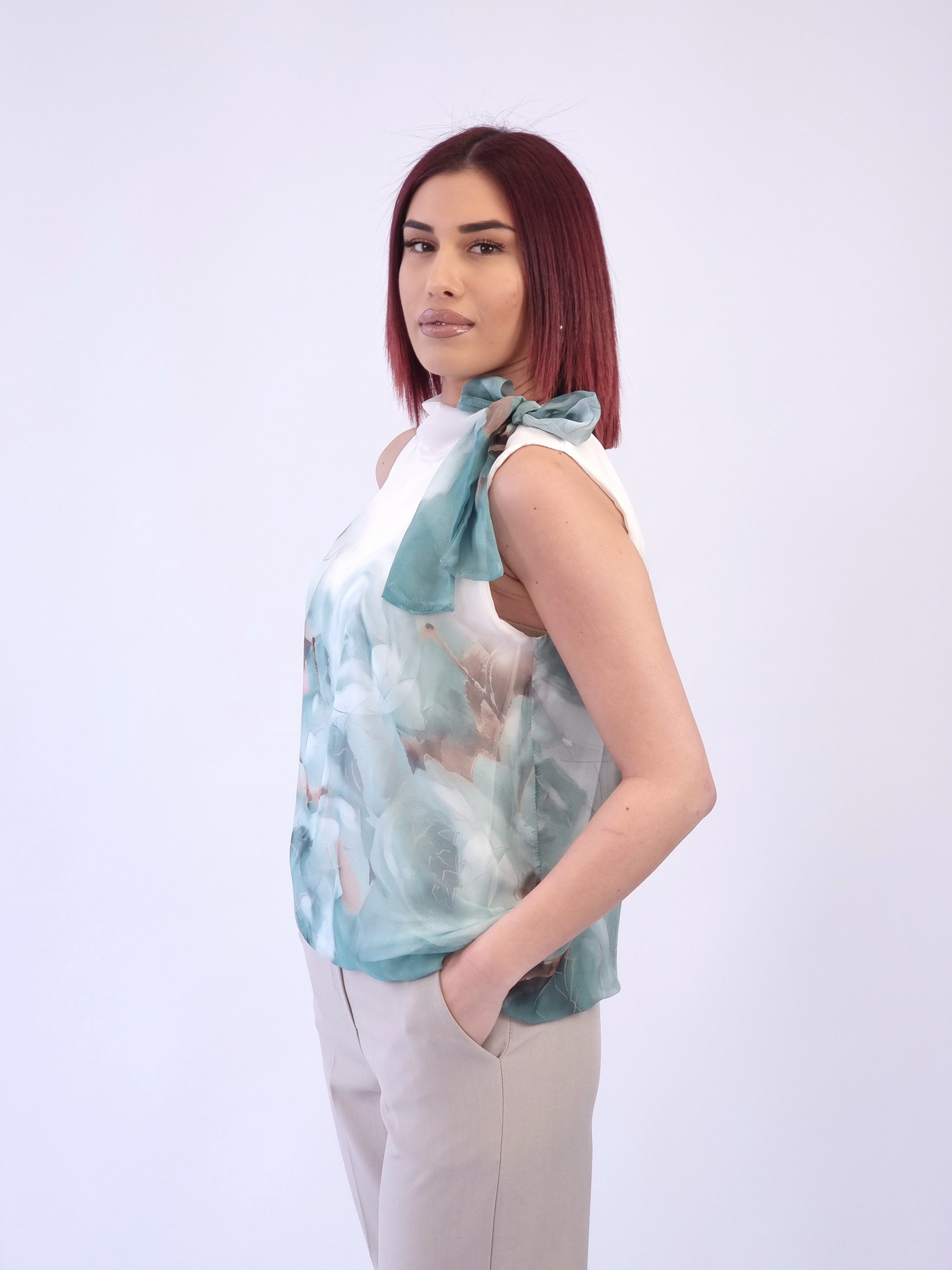 Μπλούζα παρτούς ώμους δετό στο λαιμό-Μέντα
