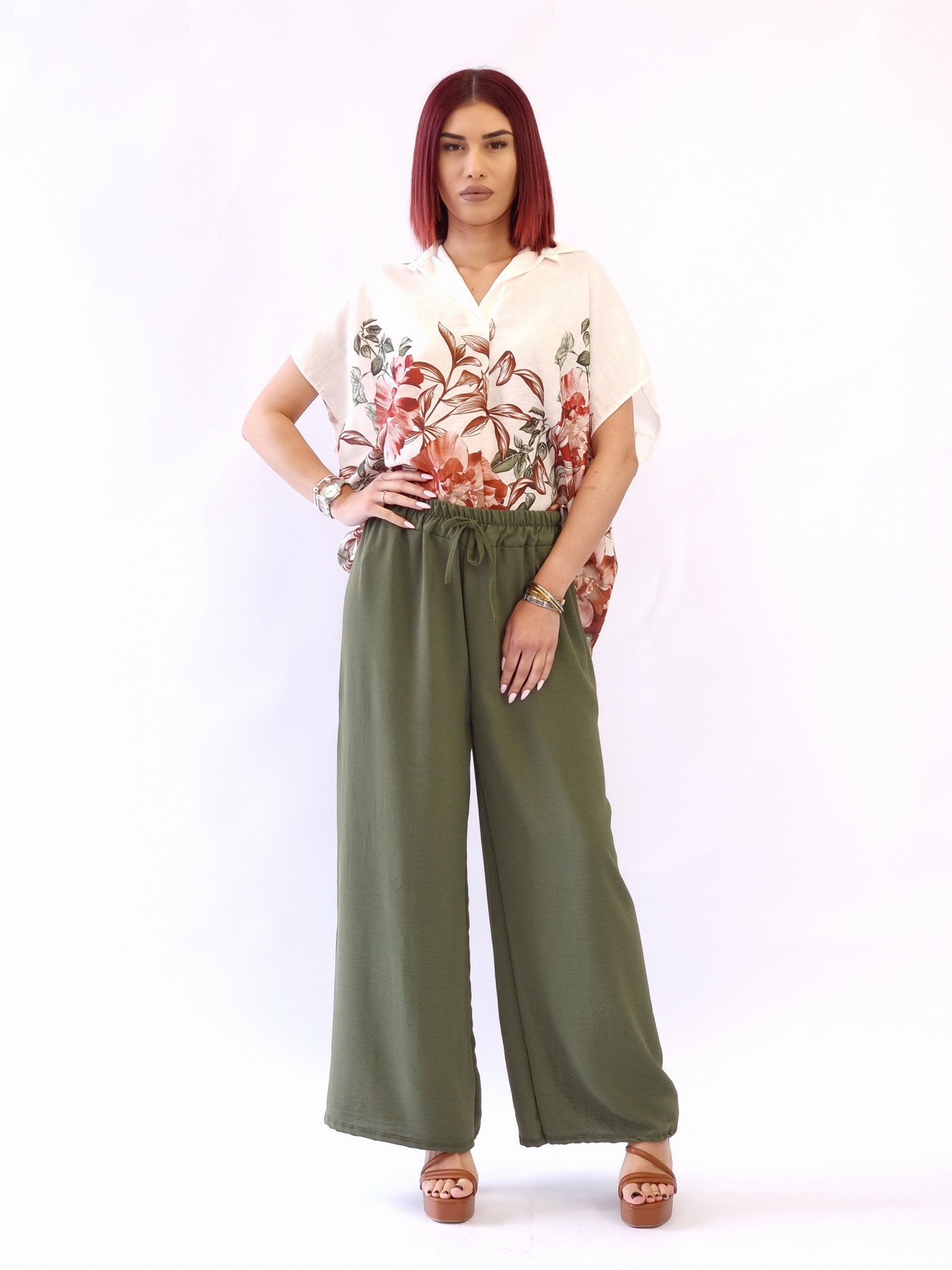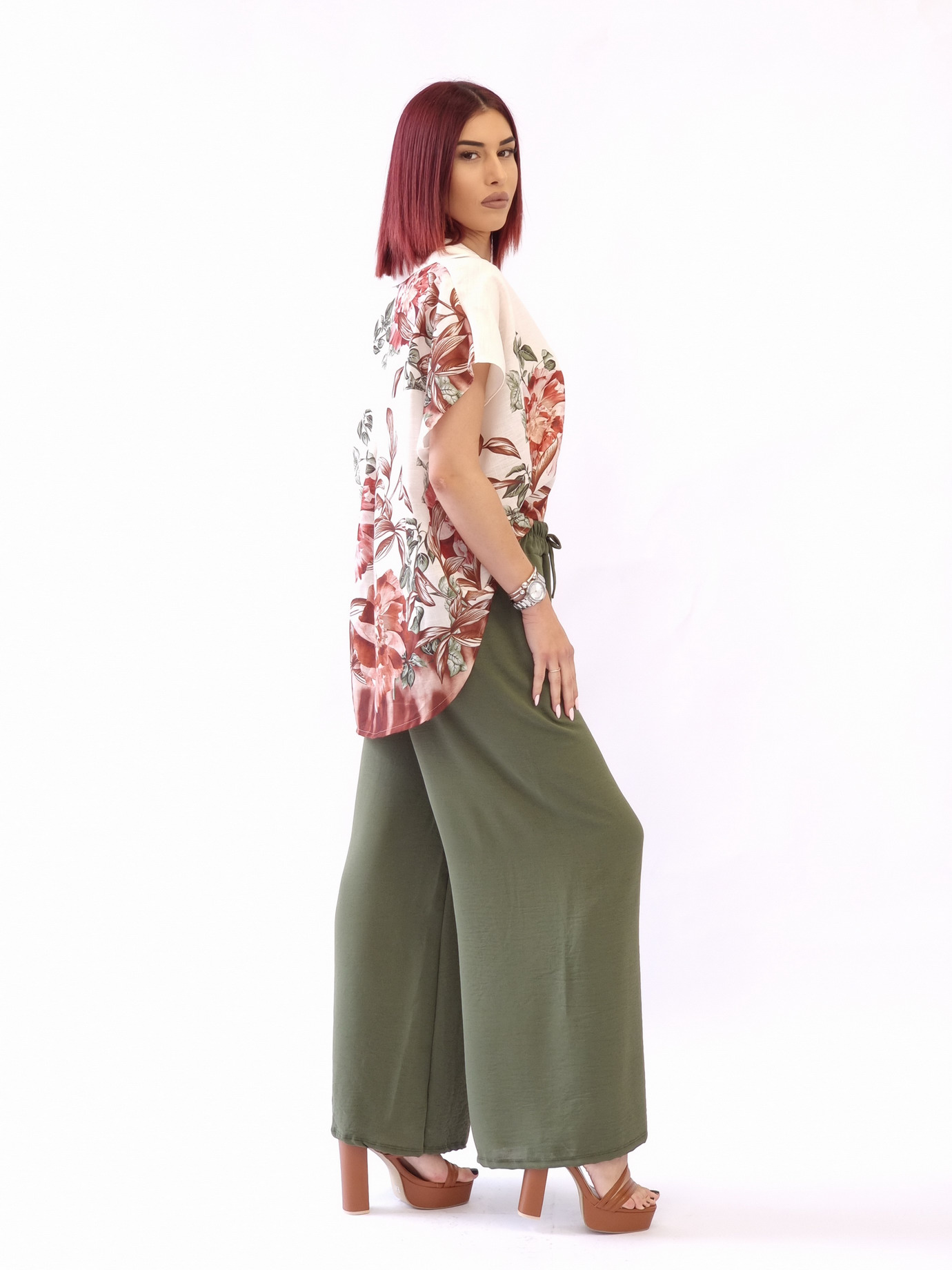 • Μπλούζα σχέδιο λουλούδια-Χακί