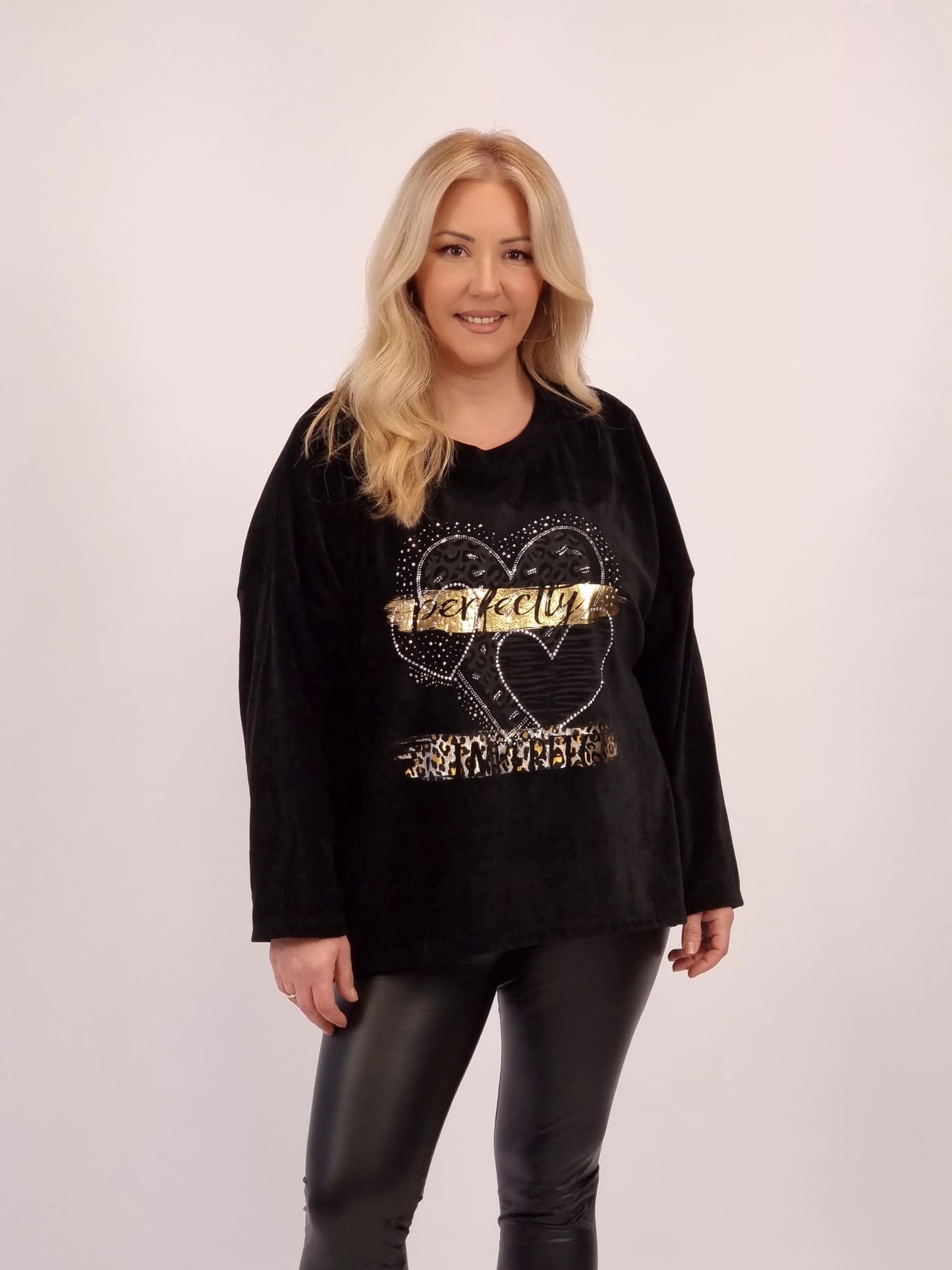 Άνετη μπλούζα σε oversized γραμμή, με εντυπωσιακό print καρδιά και διακοσμητικές λεπτομέρειες. Μαλακή υφή, άνετη εφαρμογή και ιδανική για καθημερινά, stylish looks.