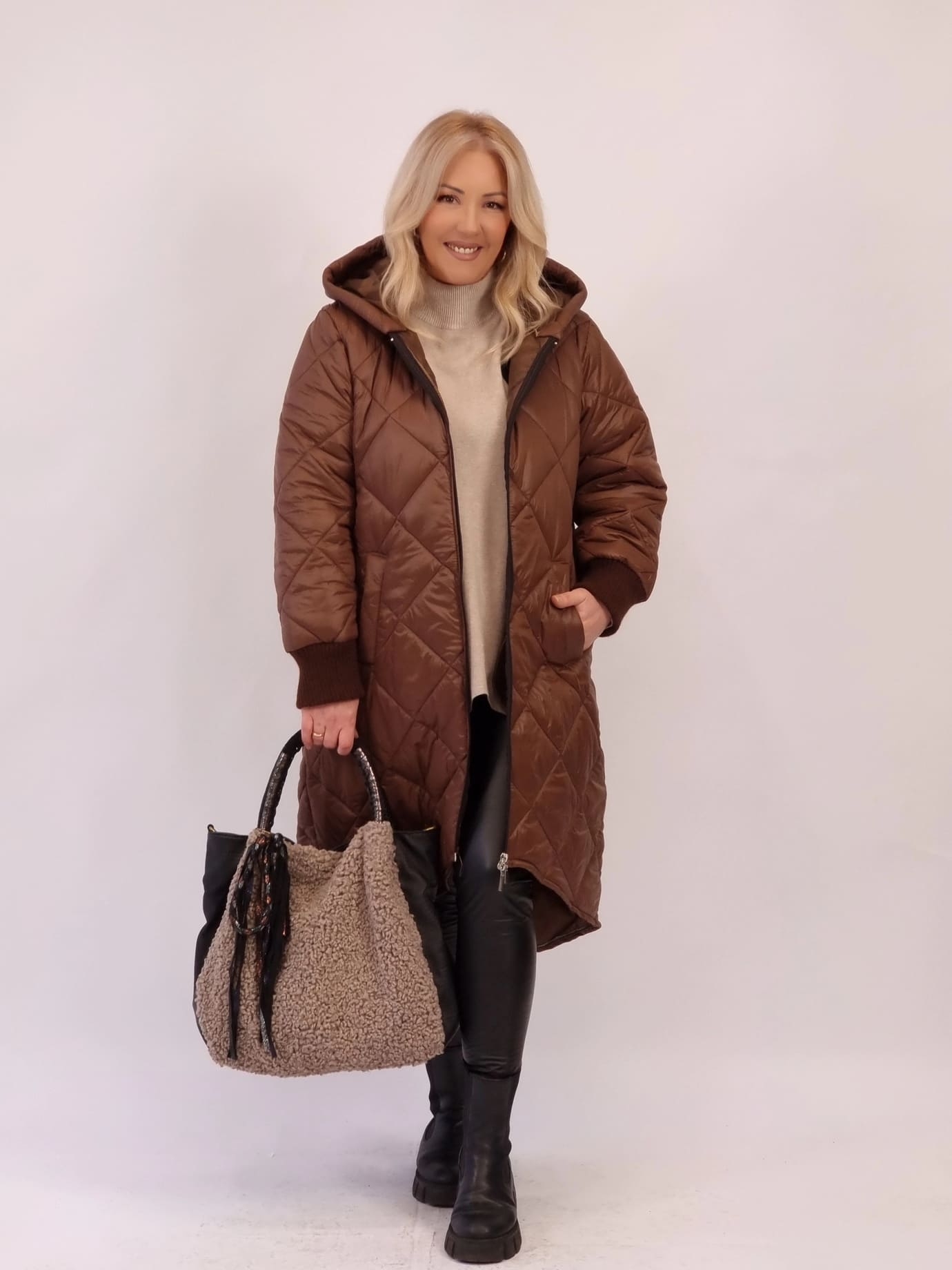 Μπουφάν Καπιτονέ Oversized Με Φερμουάρ – Σοκολά