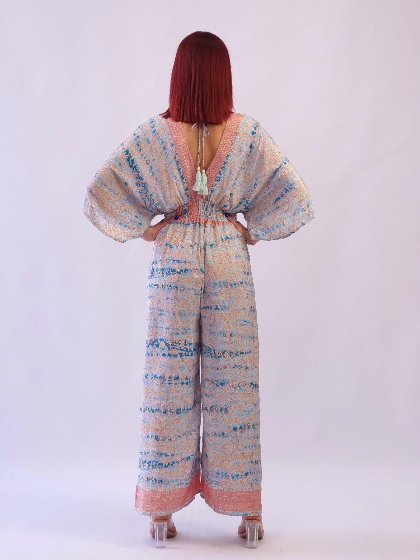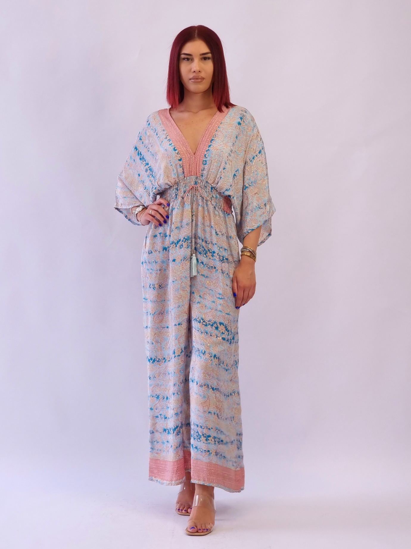 Ολόσωμη παντελόνα boho μαργαρίτες-Σιέλ