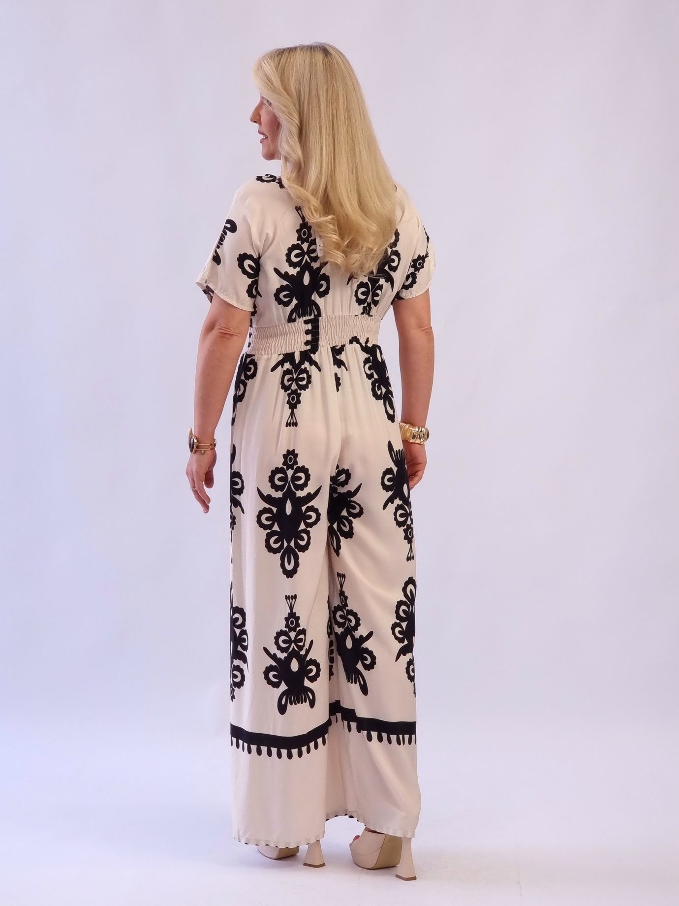• Ολόσωμη παντελόνα βάση εκρού -μαύρα μοτίβα