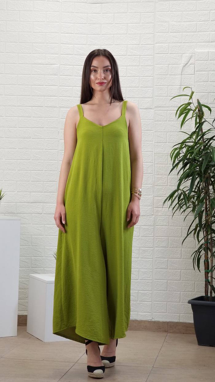 Ολόσωμη παντελόνα με τιράντες -Πράσινο