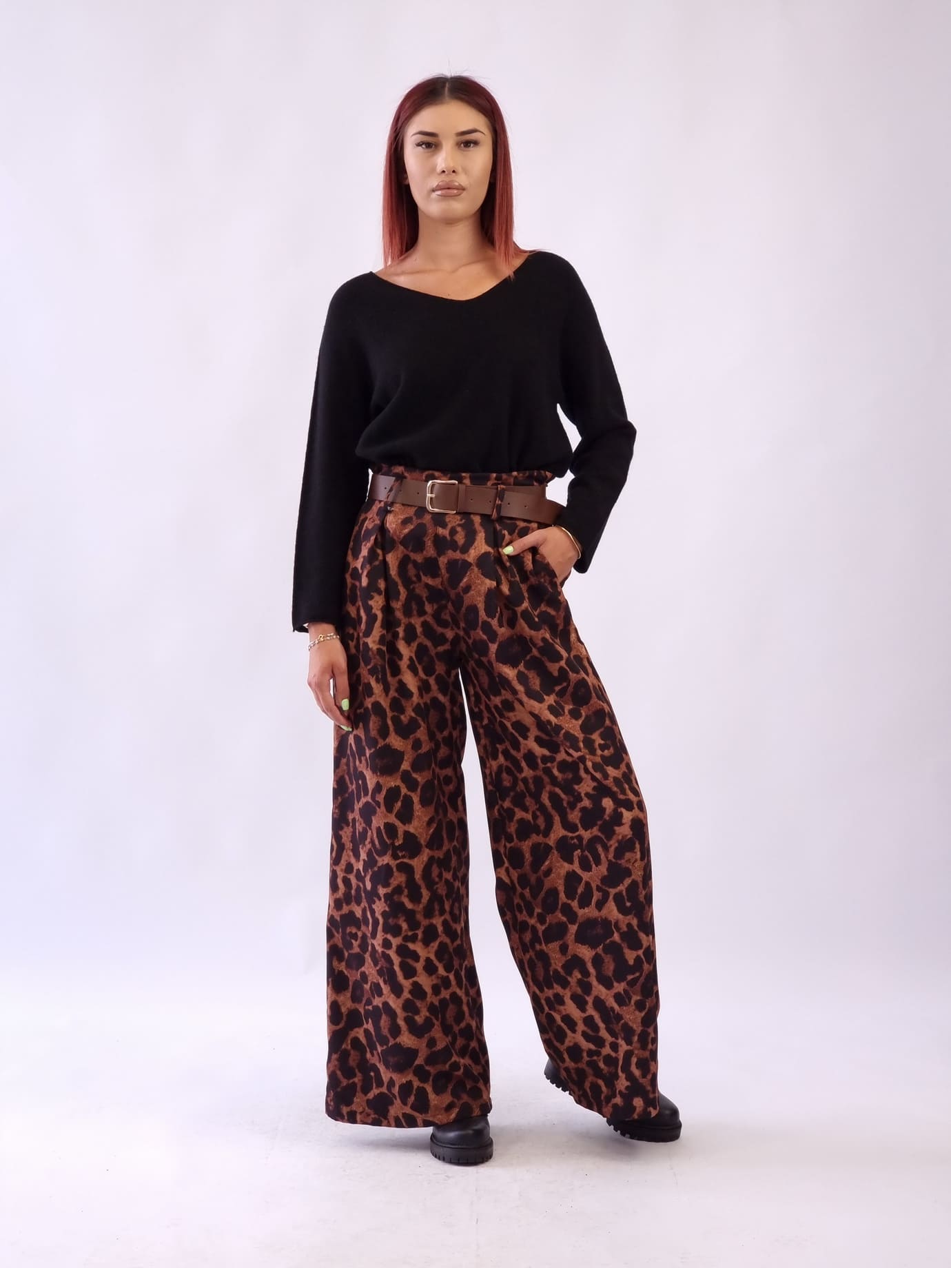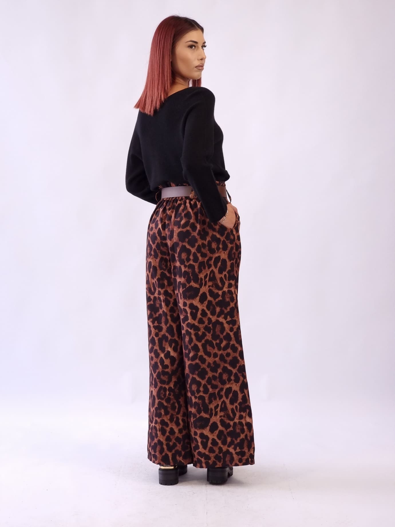 • Παντελόνα Animal Print Με Ζώνη-Ταμπά