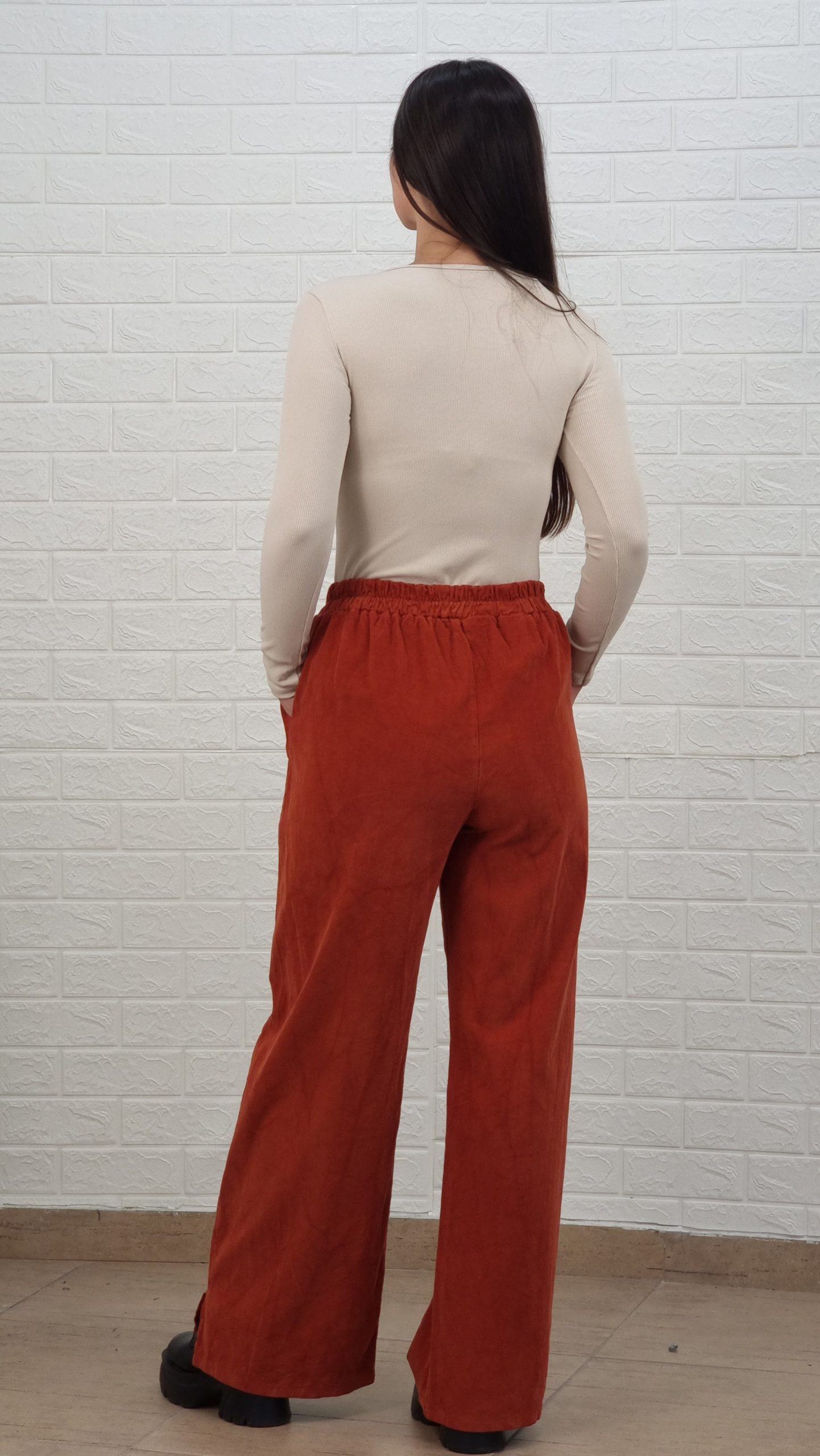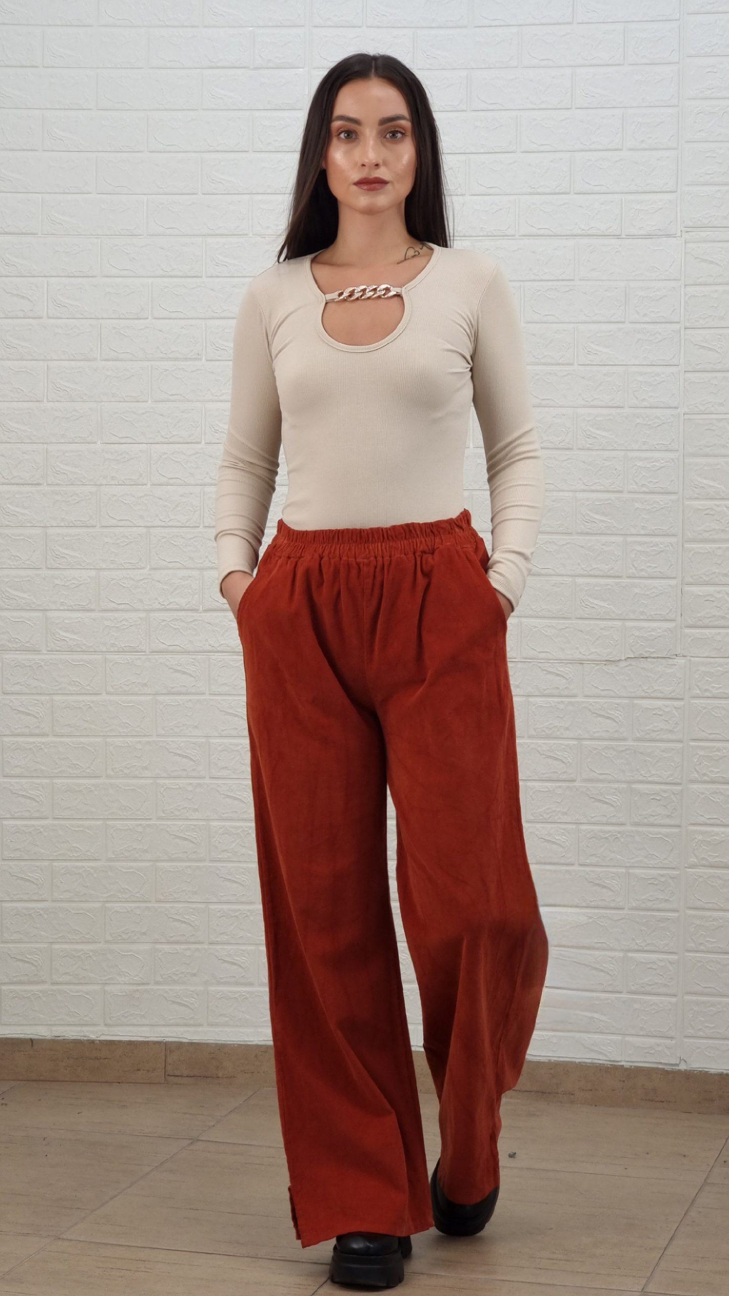 Παντελόνα κοτλέ, τύπου καμπάνα, με λάστιχο στη μέση. Άνετο και χαλαρό ύφασμα, χωρίς να σφίγγει και να είναι τσιτωμένο. 100%cotton Οι μετρήσεις του πίνακα είναι αντιπροσωπευτικές για κάθε προϊόν.