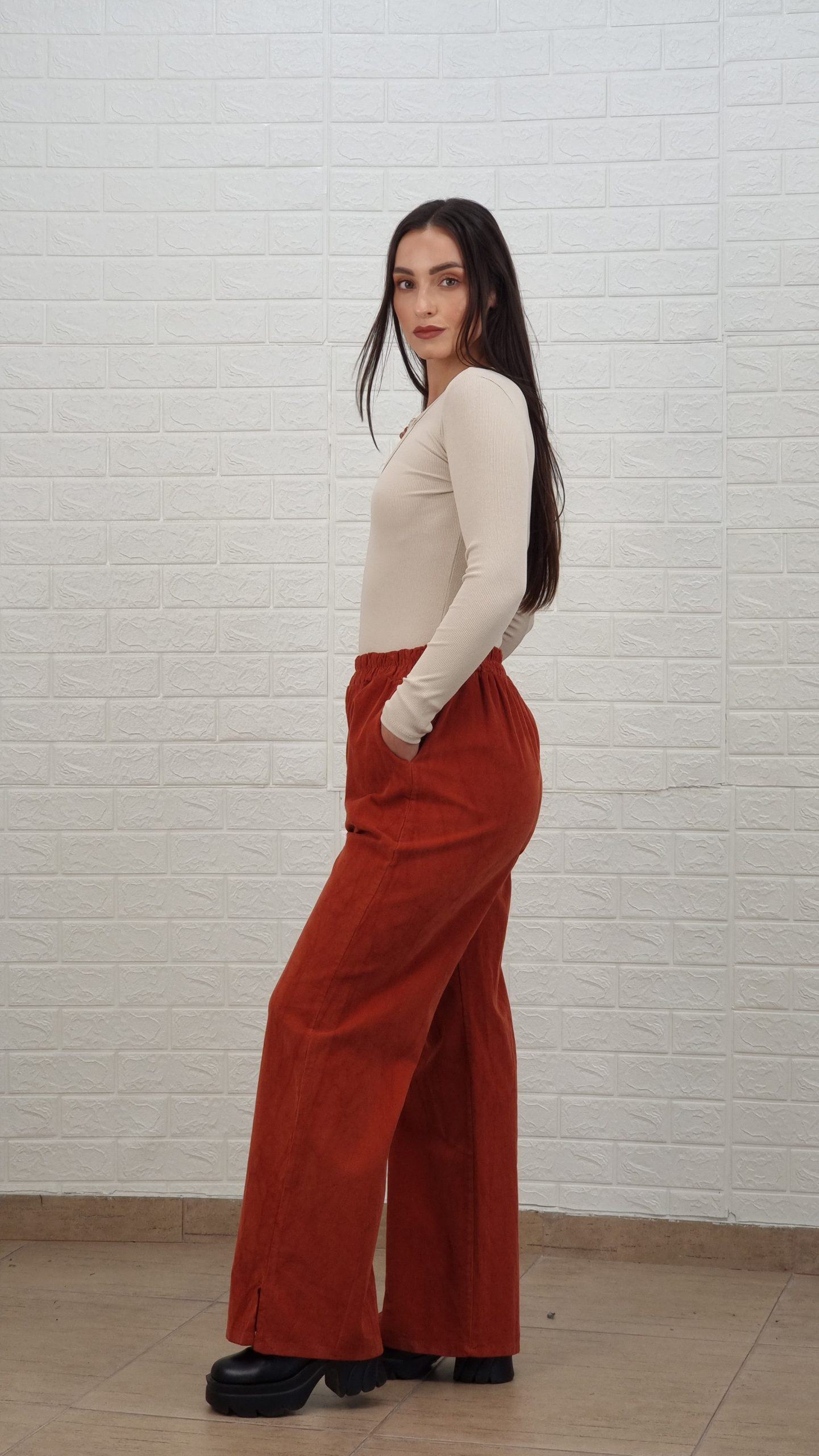 • Παντελόνα κοτλέ με λάστιχο στη μέση -Εκάι