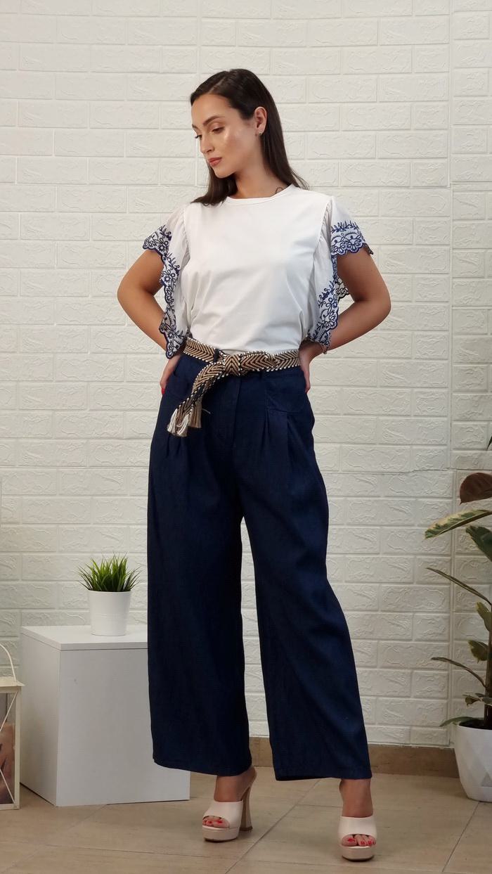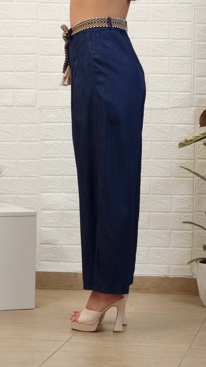 Παντελόνα με λάστιχο και ζώνη-Μπλέ