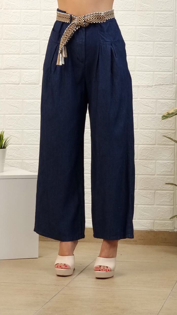• Μπλέ σκούρο Παντελόνι με πιέτες