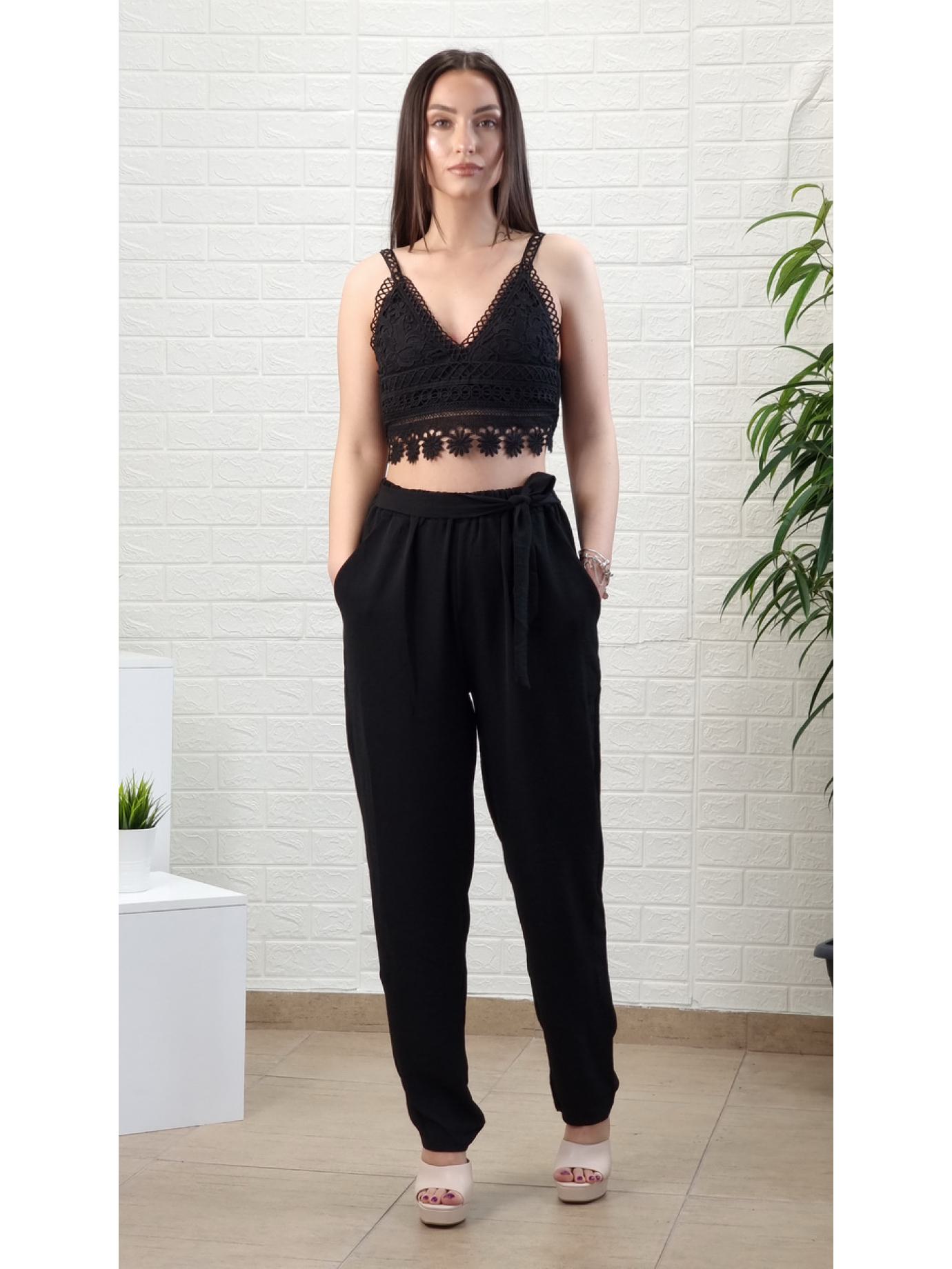 Παντελόνα με άνετη γραμμή και αεράτο ύφασμα έχει λάστιχο στη μέση και ζώνη στο ίδιο ύφασμα διαθέτει τσέπες. 100% pol Δείτε τον πίνακα παρακάτω με τις μετρήσεις του προϊόντος είναι αντιπροσωπευτικός για κάθε προϊόν