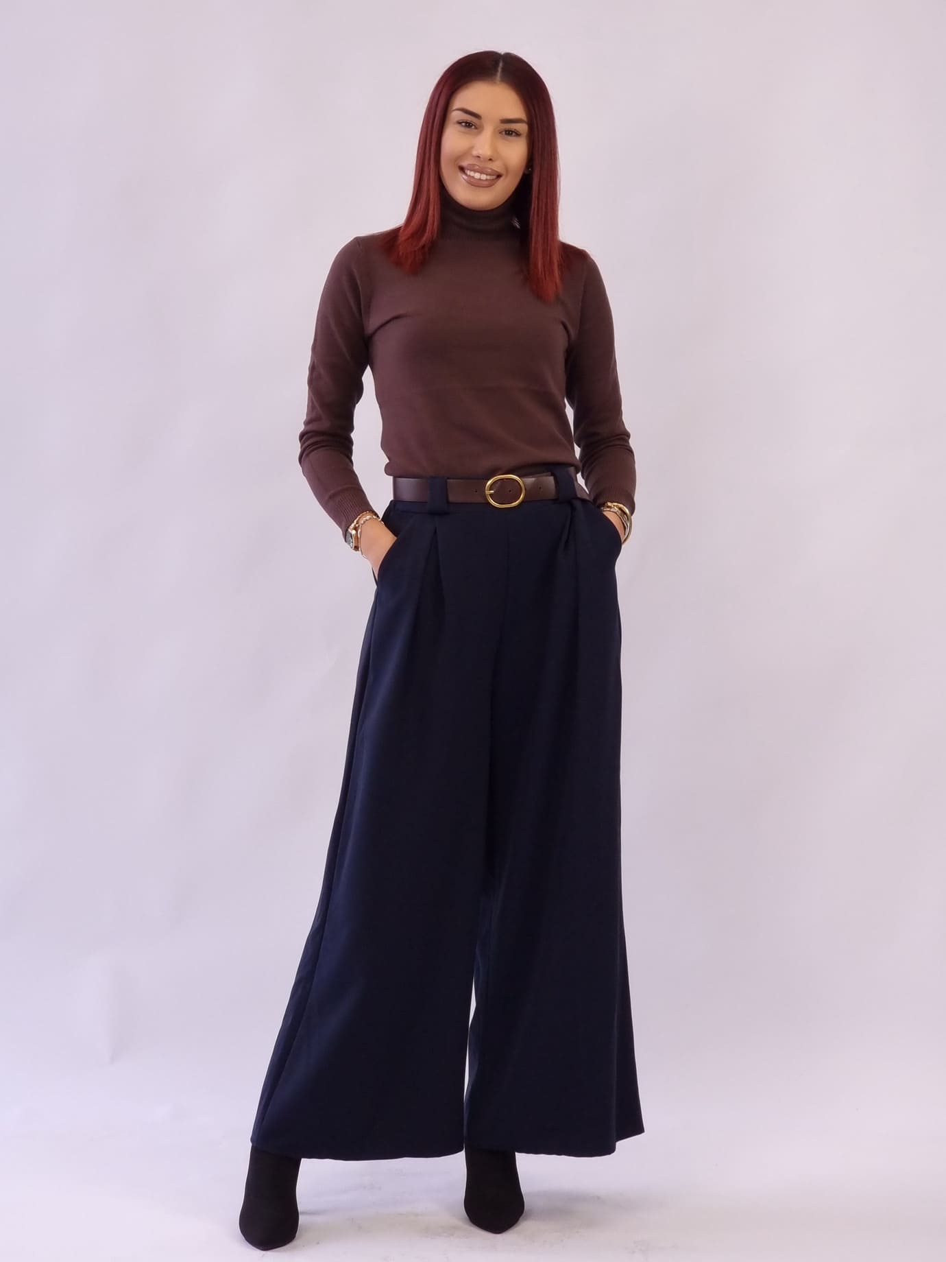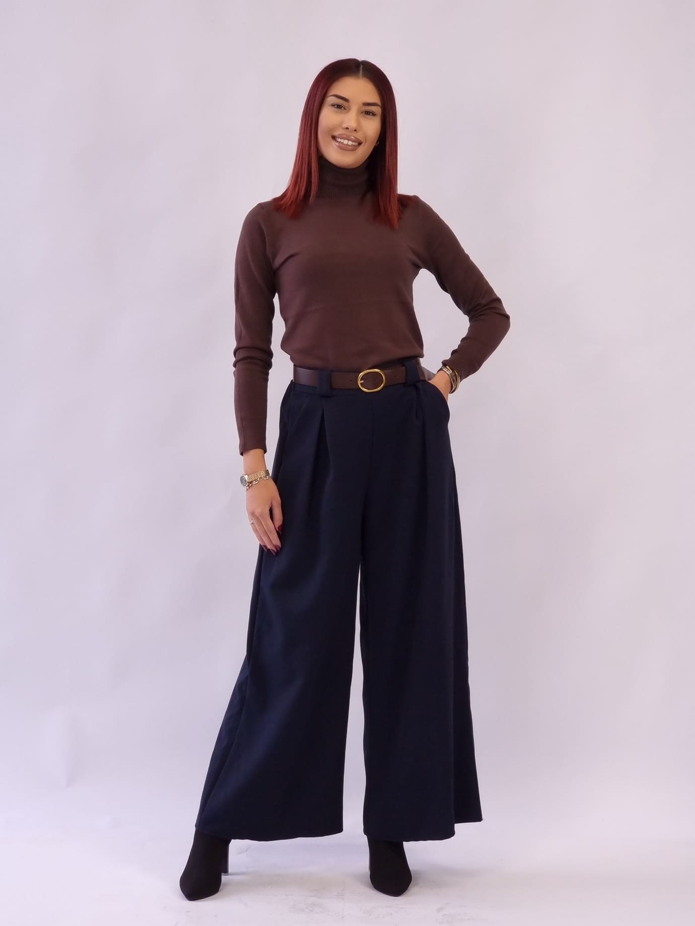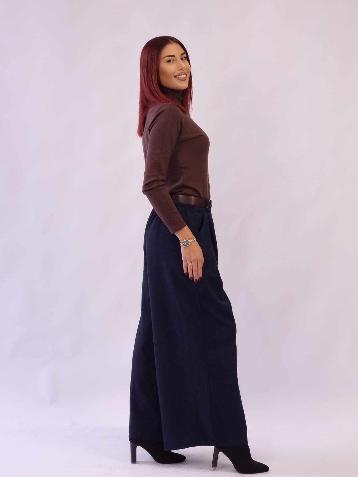 Άνετο ψηλόμεση παντελόνα με λάστιχο στη μέση και δώρο ζώνη.