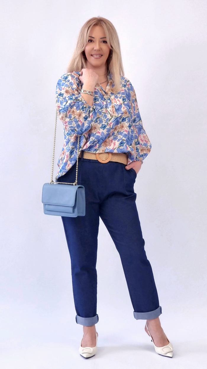• Μπλέ Chambray παντελόνι βαμβακερό δροσερό ύφασμα με ελαστικότητα