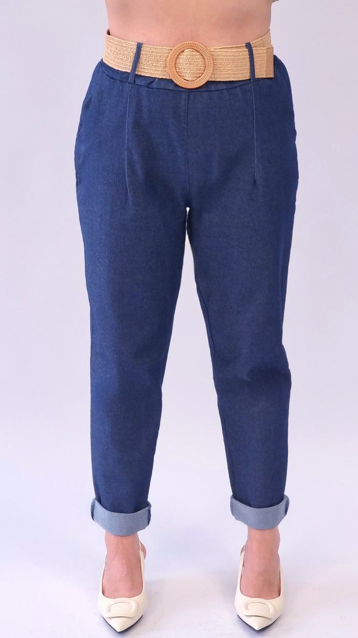 • Παντελόνι Chambray με ζώνη-Μπλέ σκούρο