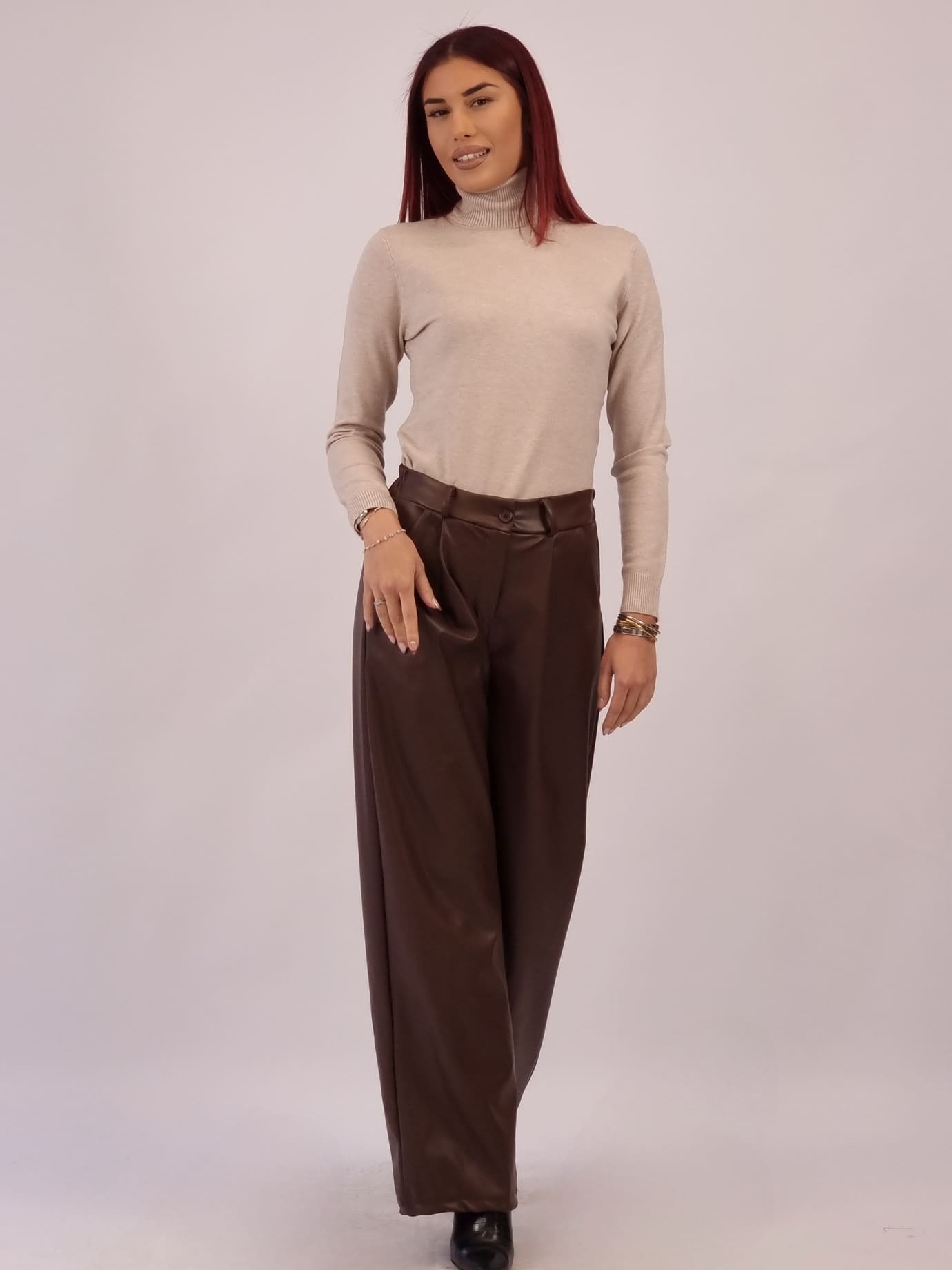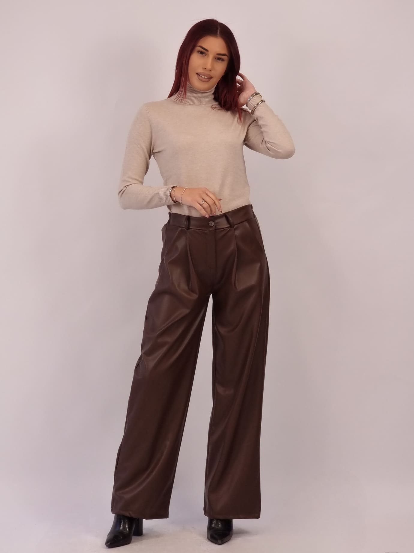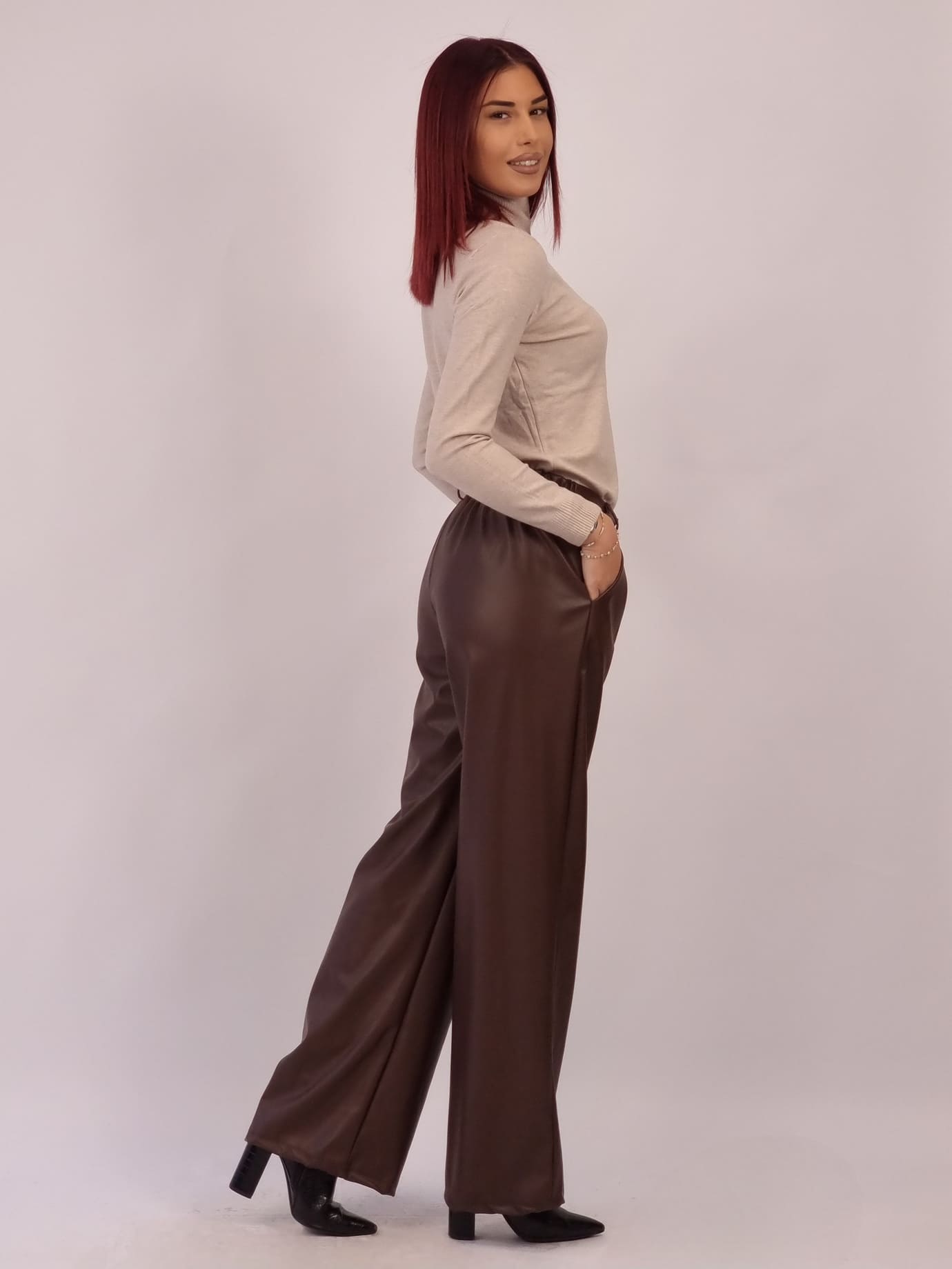 Το καφέ παντελόνι δερματίνη που κάνει κάθε look να δείχνει πιο chic