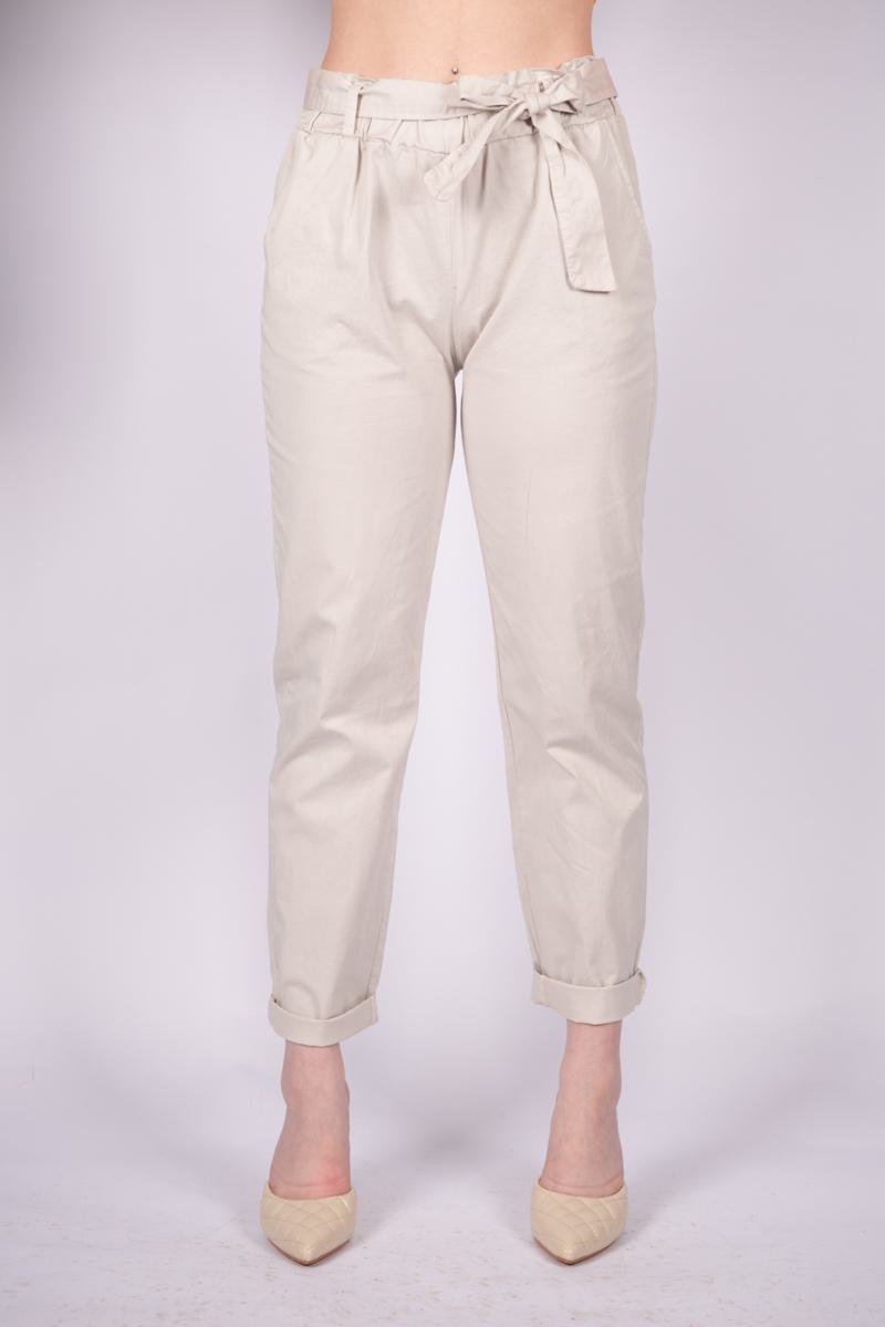 • Ψηλόμεσο παντελόνι μπέζ  με λάστιχο στη μέση και ζώνη ίδιο ύφασμα