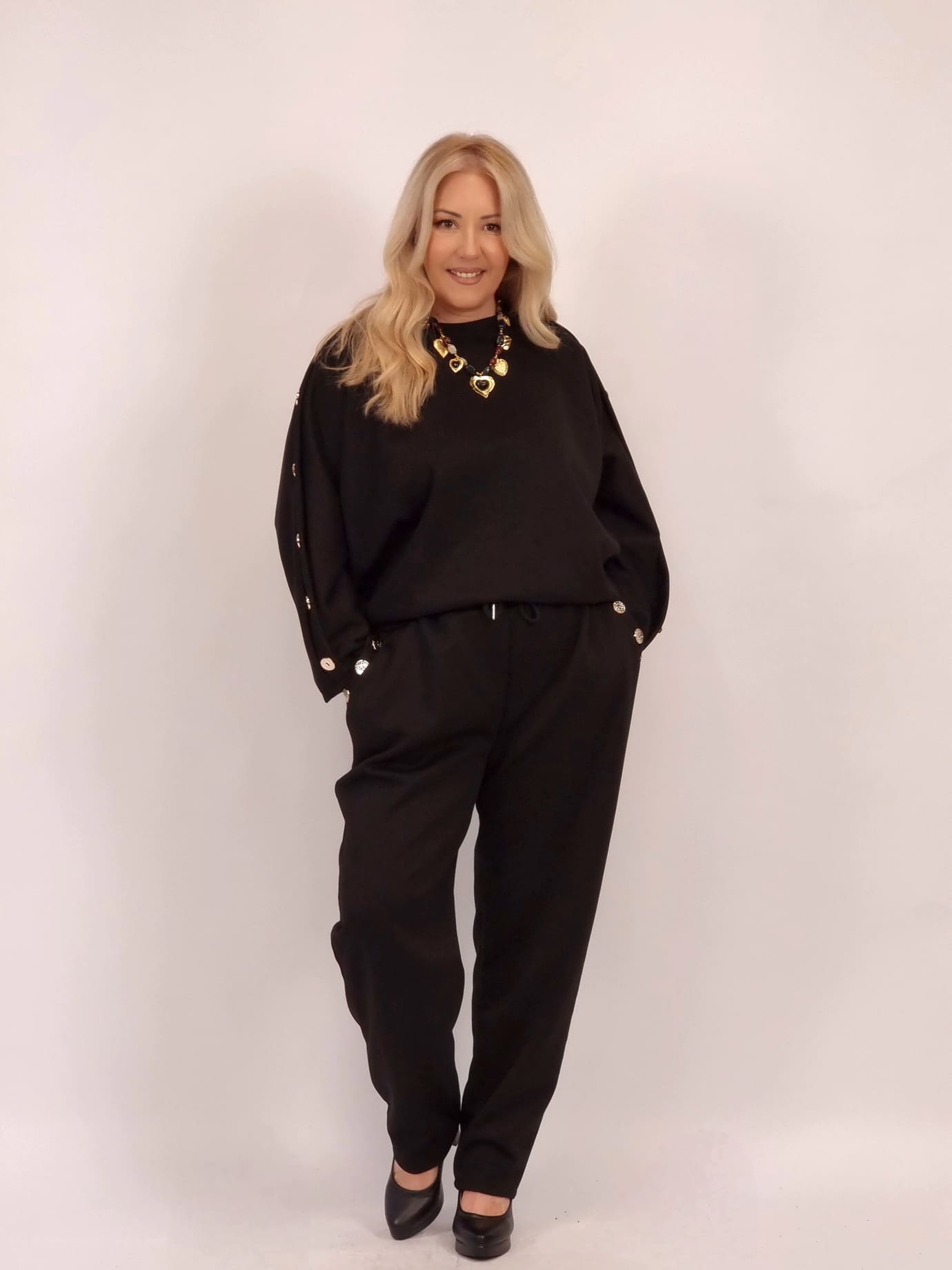 Παντελόνι Oversize Με Λάστιχο Κουμπιά- Μαύρο