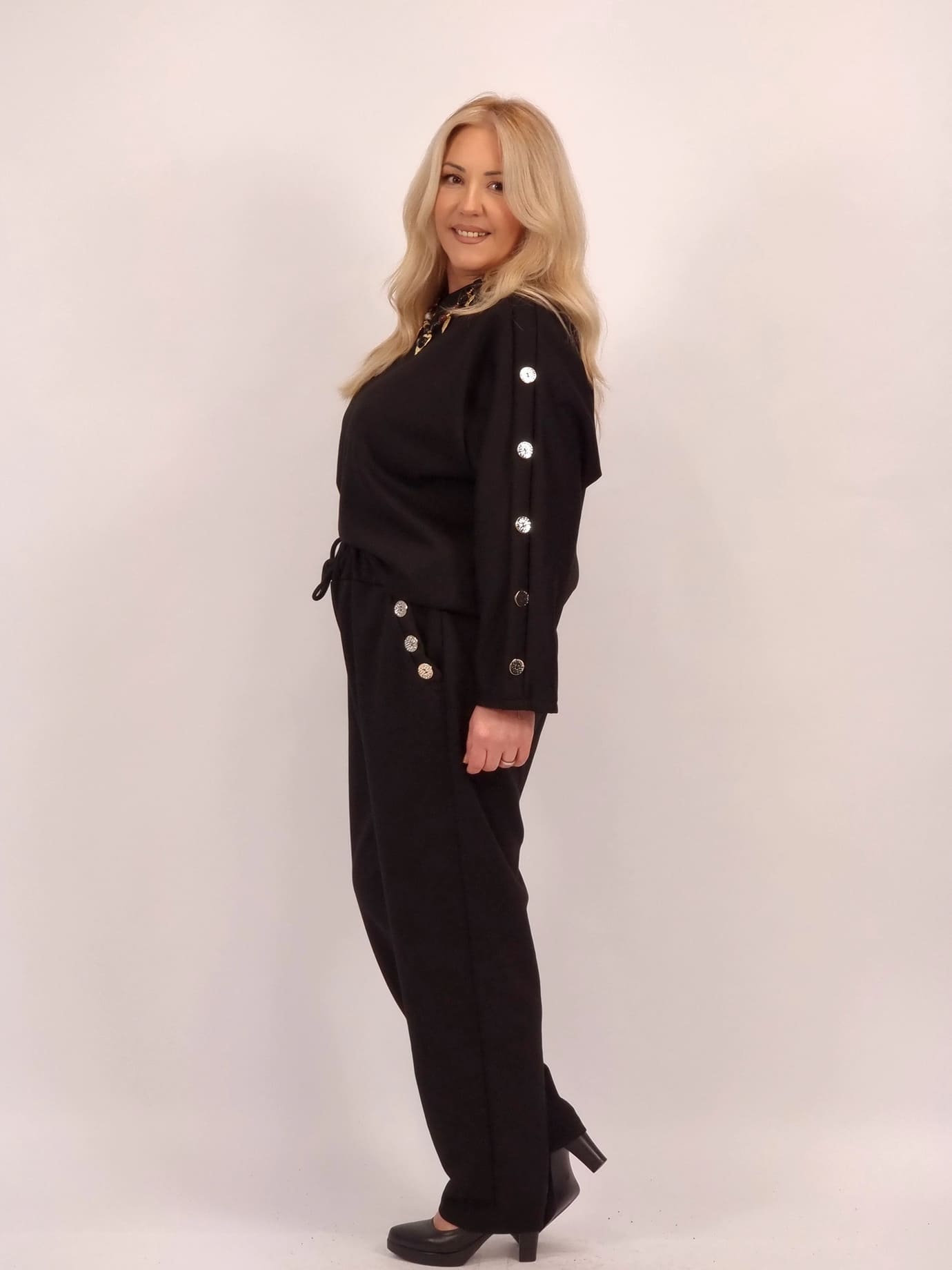 Άνετο παντελόνι από ποντοστόφα, με λάστιχο και κορδόνι στη μέση για τέλεια εφαρμογή. Διαθέτει τσέπες με διακοσμητικά κουμπιά που δίνουν κομψή λεπτομέρεια χωρίς υπερβολές. oversized γραμμή, ιδανικό για καθημερινότητα αλλά και πιο προσεγμένες εμφανίσεις.