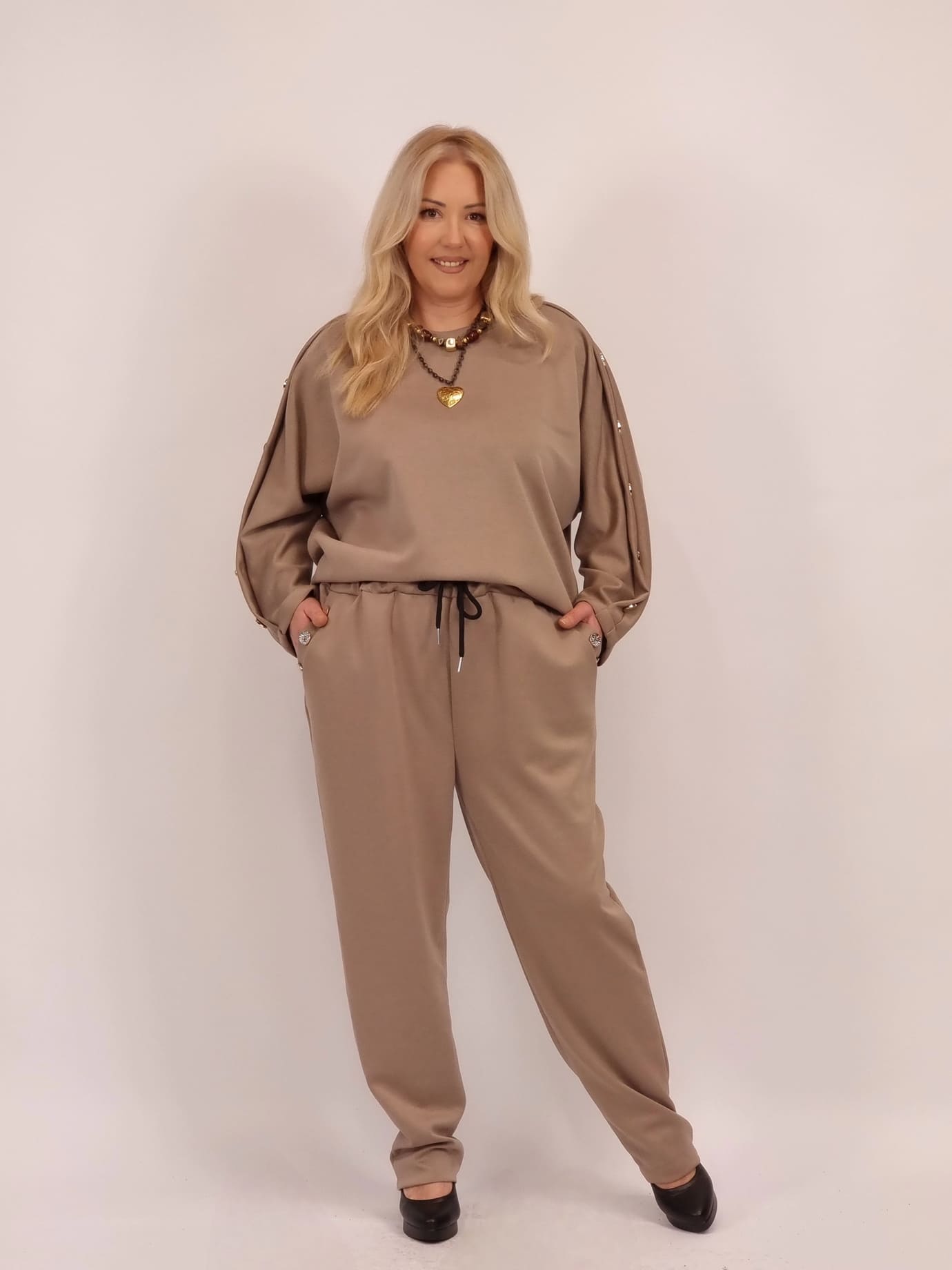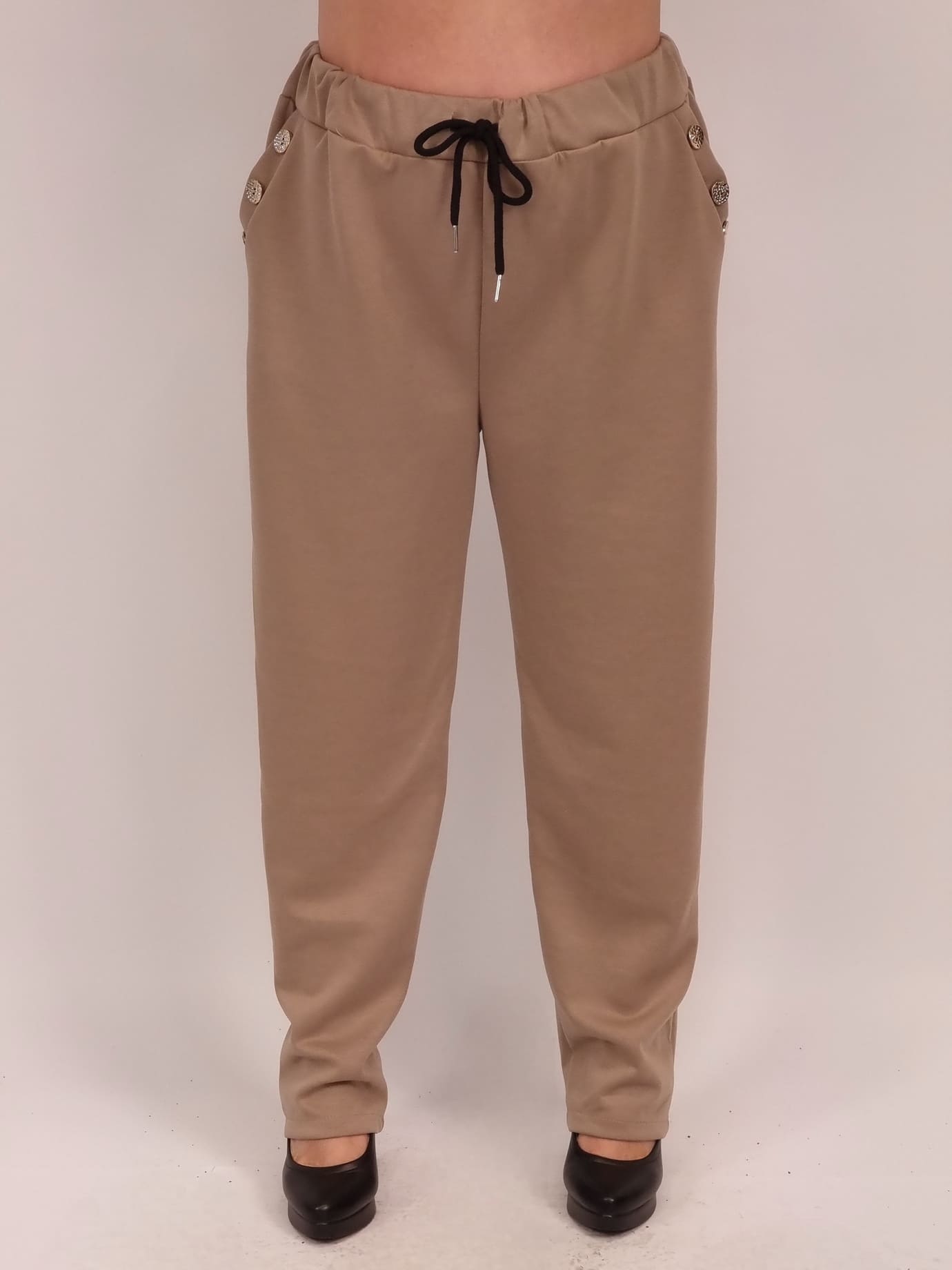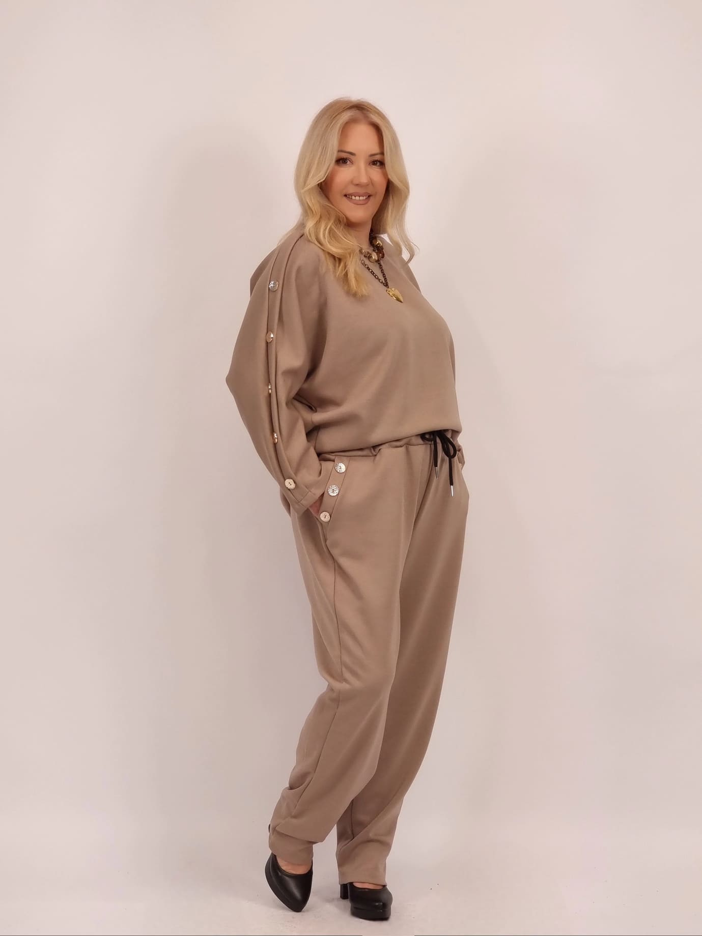 Άνετο παντελόνι από ποντοστόφα, με λάστιχο και κορδόνι στη μέση για τέλεια εφαρμογή. Διαθέτει τσέπες με διακοσμητικά κουμπιά που δίνουν κομψή λεπτομέρεια χωρίς υπερβολές. oversized γραμμή, ιδανικό για καθημερινότητα αλλά και πιο προσεγμένες εμφανίσεις.