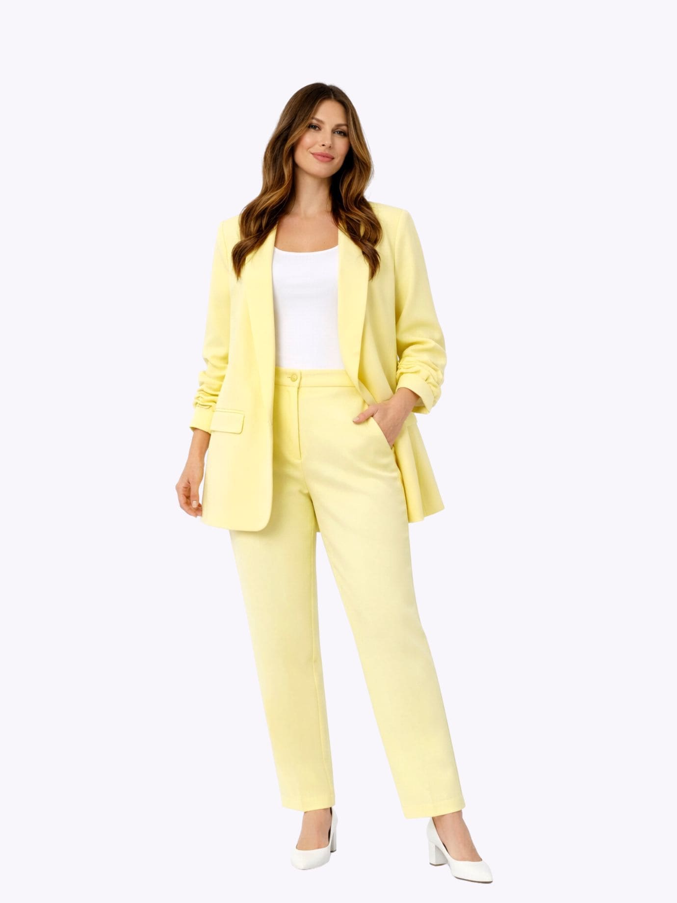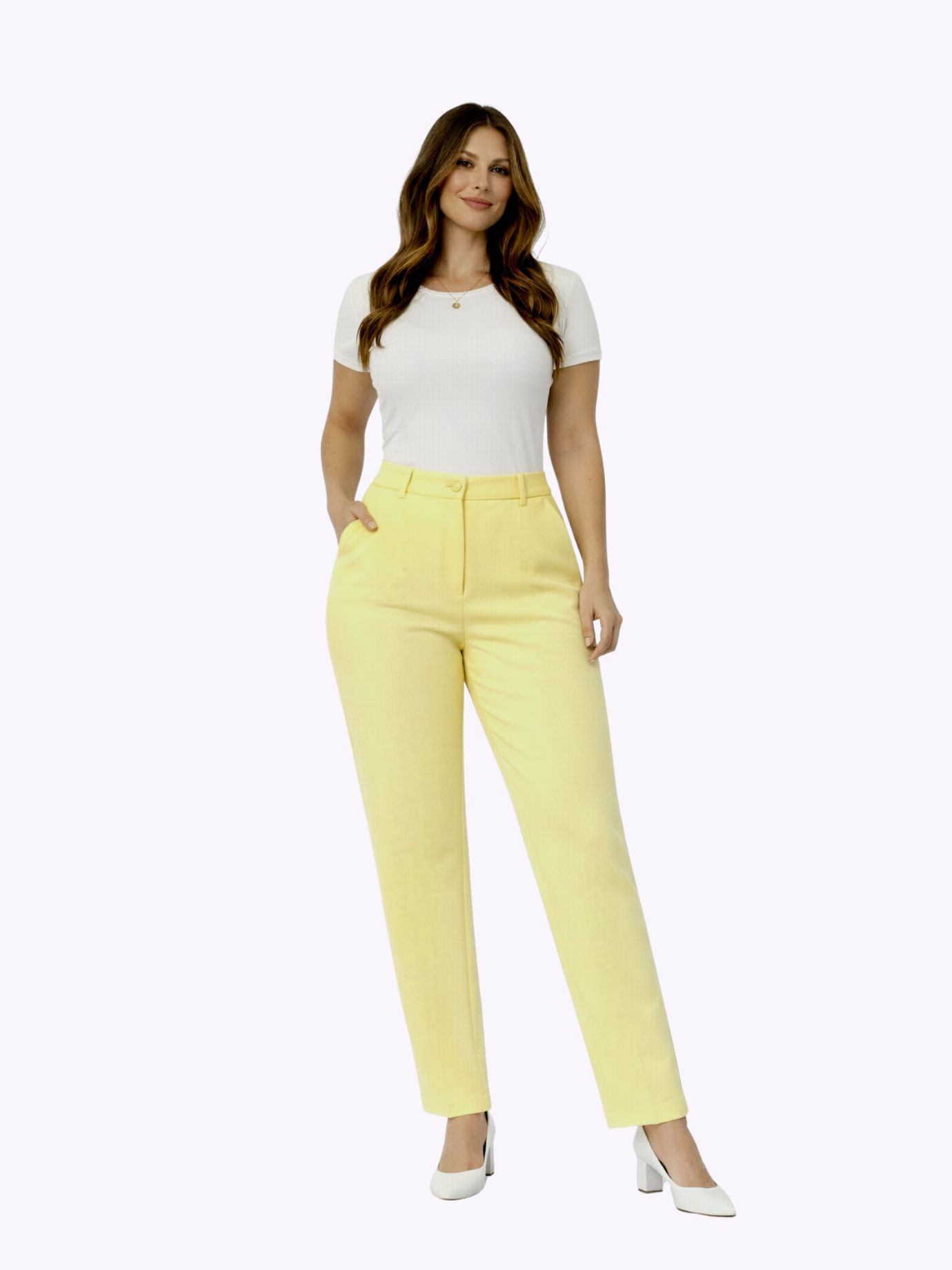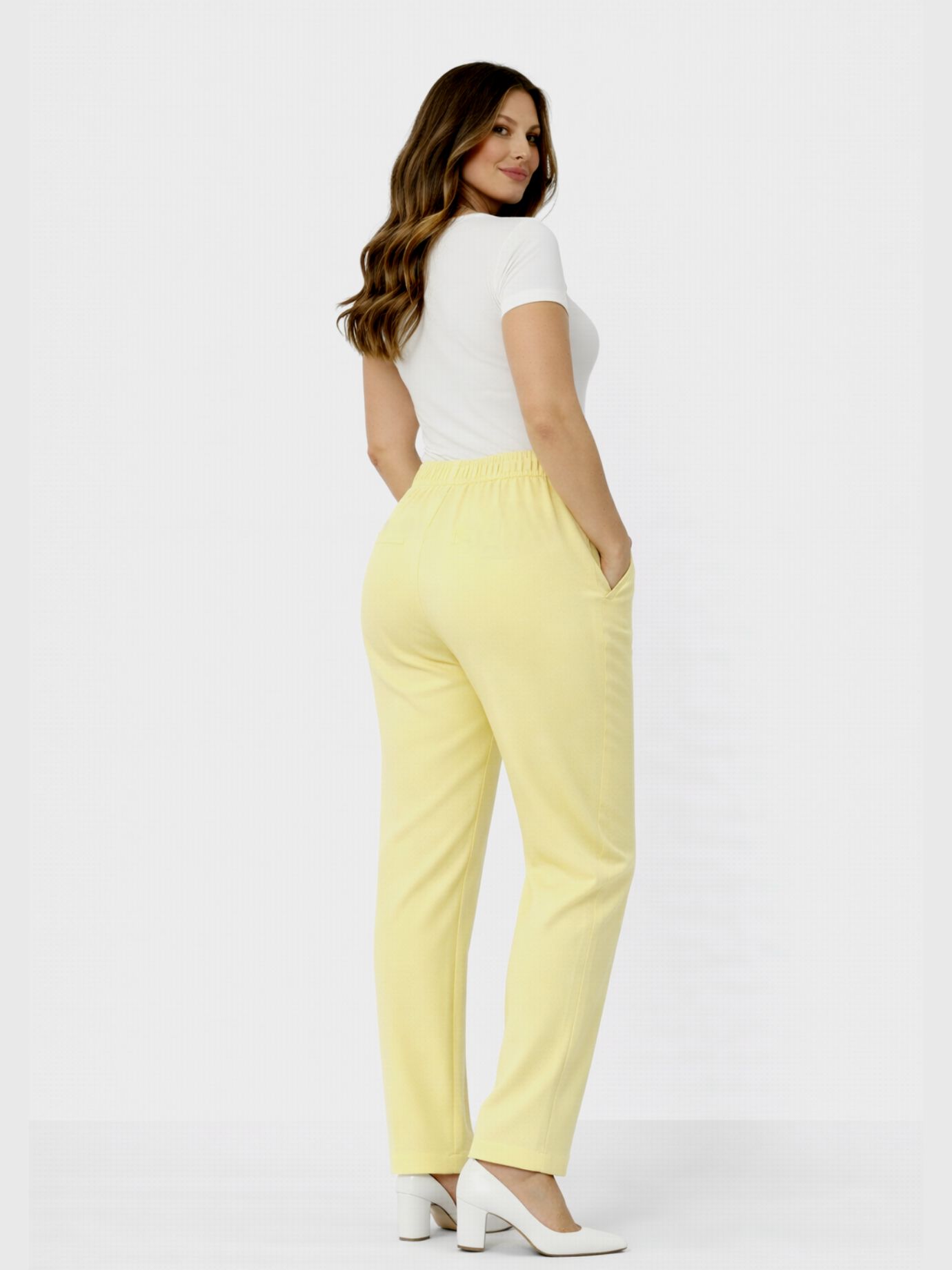 Παντελόνι ψηλόμεσο oversize χρώμα λεμονί Εφαρμόζει σωστά στο σώμα χωρίς να πιέζει και μπορεί να φορεθεί από το πρωί έως το βράδυ Φοριέται άνετα και γίνεται βάση για πολλά looks Σύνθεση: 95% pol 5% elast Εφαρμογή: oversized