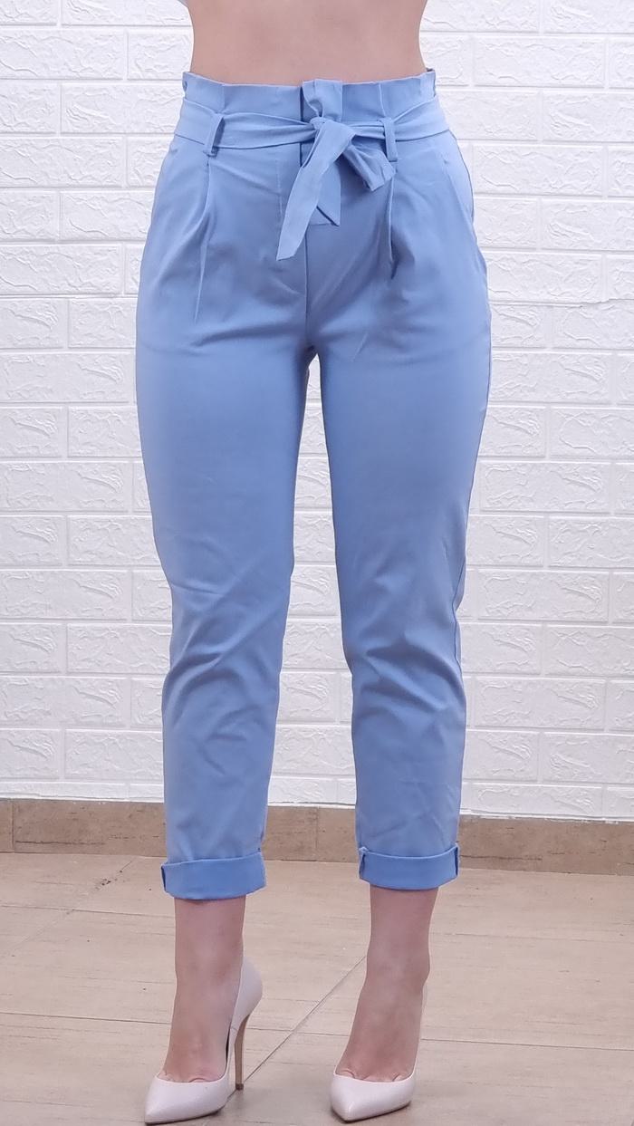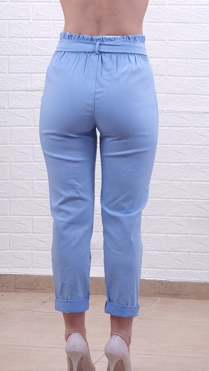 Παντελόνι ψηλόμεσο με λάστιχο και ζώνη-Σιέλ