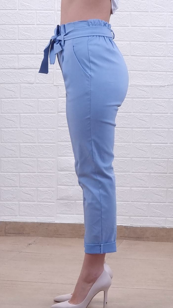 • Παντελόνι ψηλόμεσο με λάστιχο και ζώνη-Σιέλ