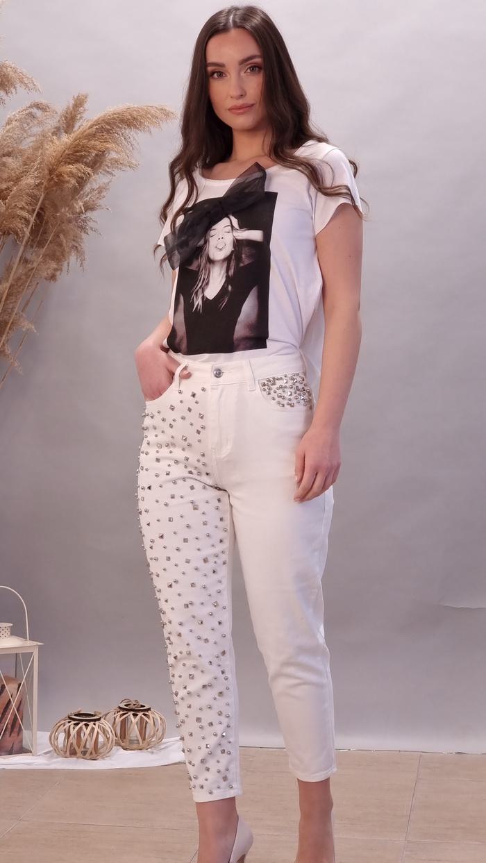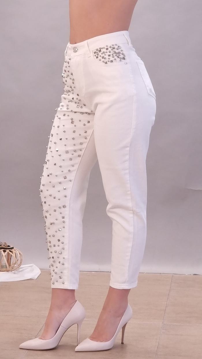 • Παντελόνι Τζίν με τρούξ-Λευκό