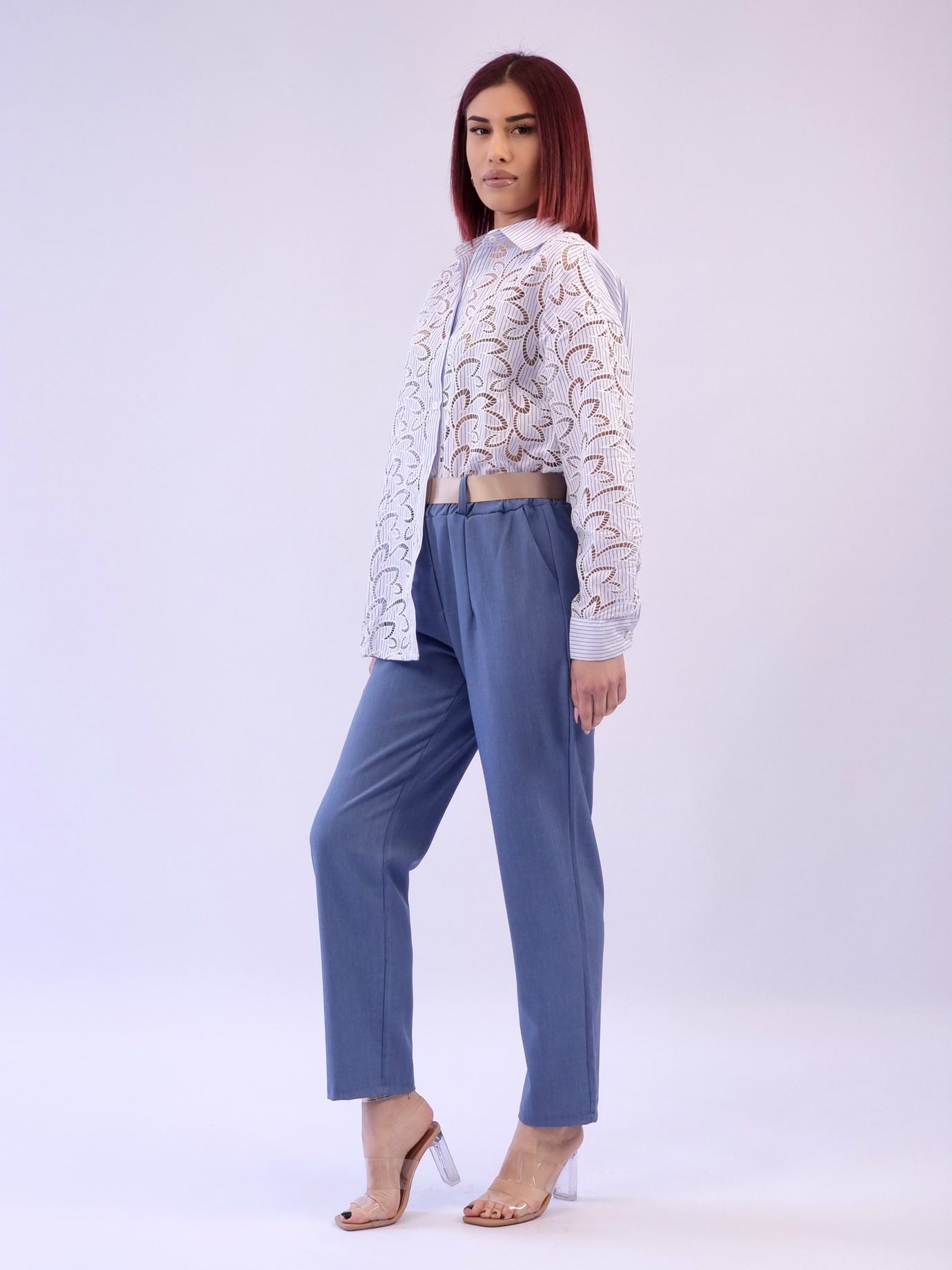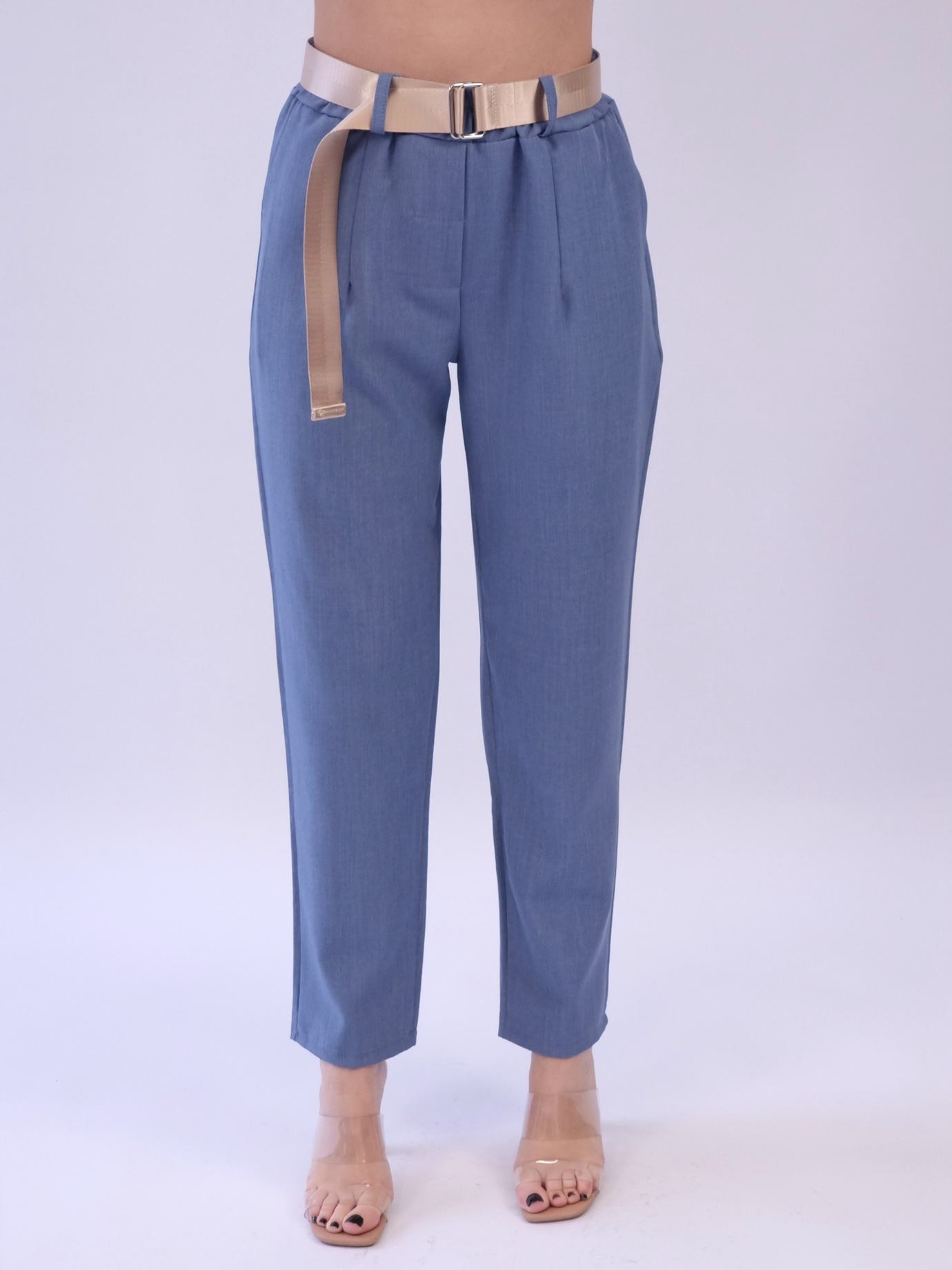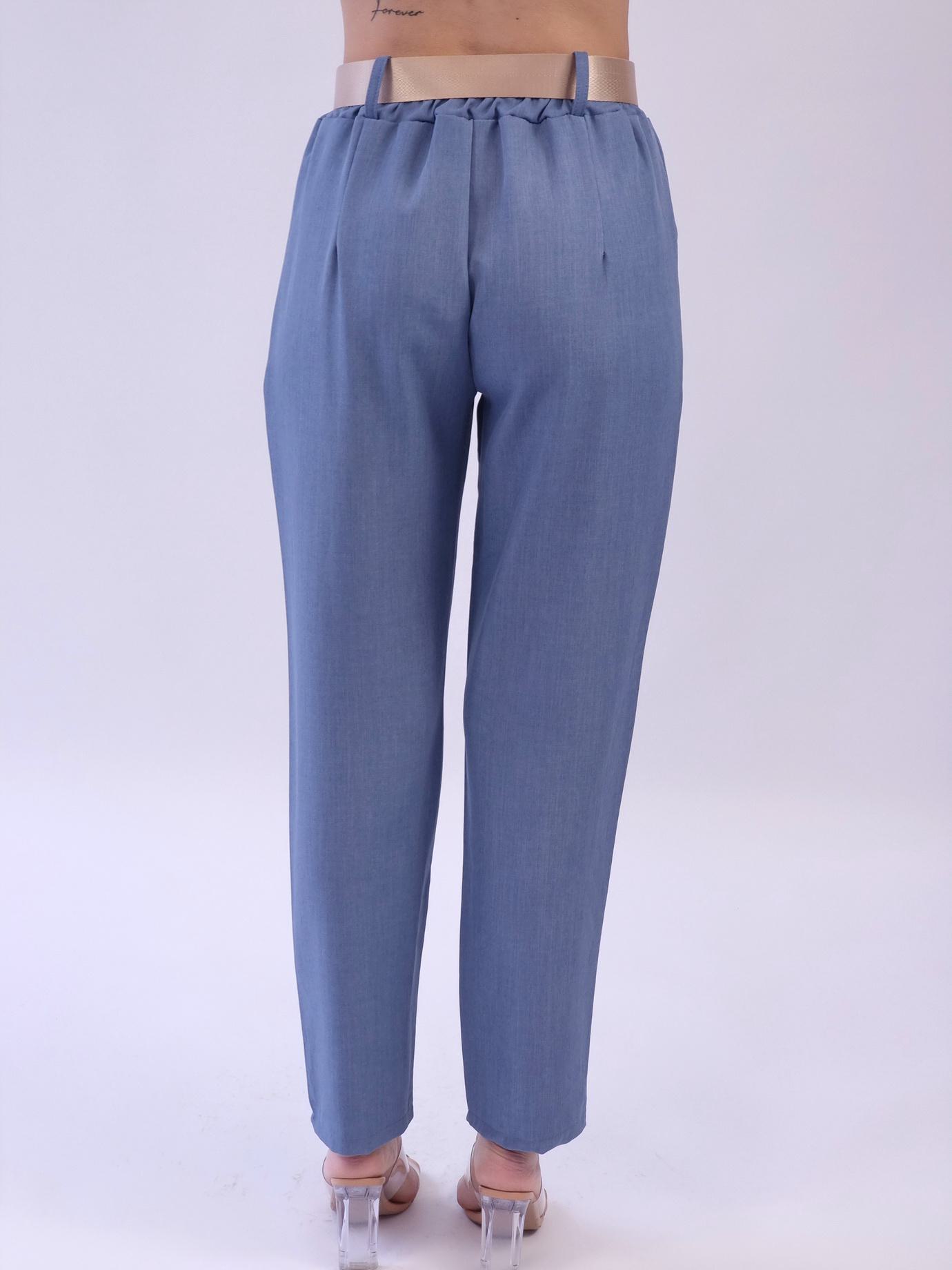 Παντελόνι υφασμάτινο με ζώνη-Μπλέ ίντιγκο