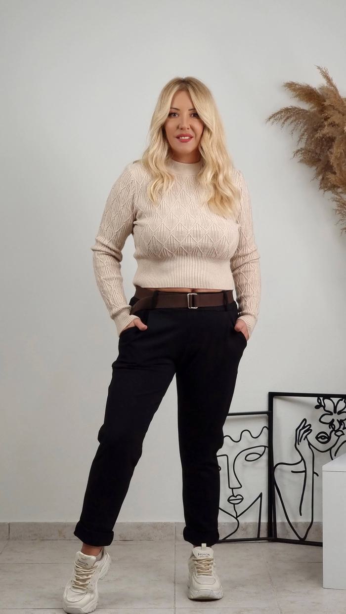 Παντελόνι ποντοστόφα με ζώνη-Μαύρο