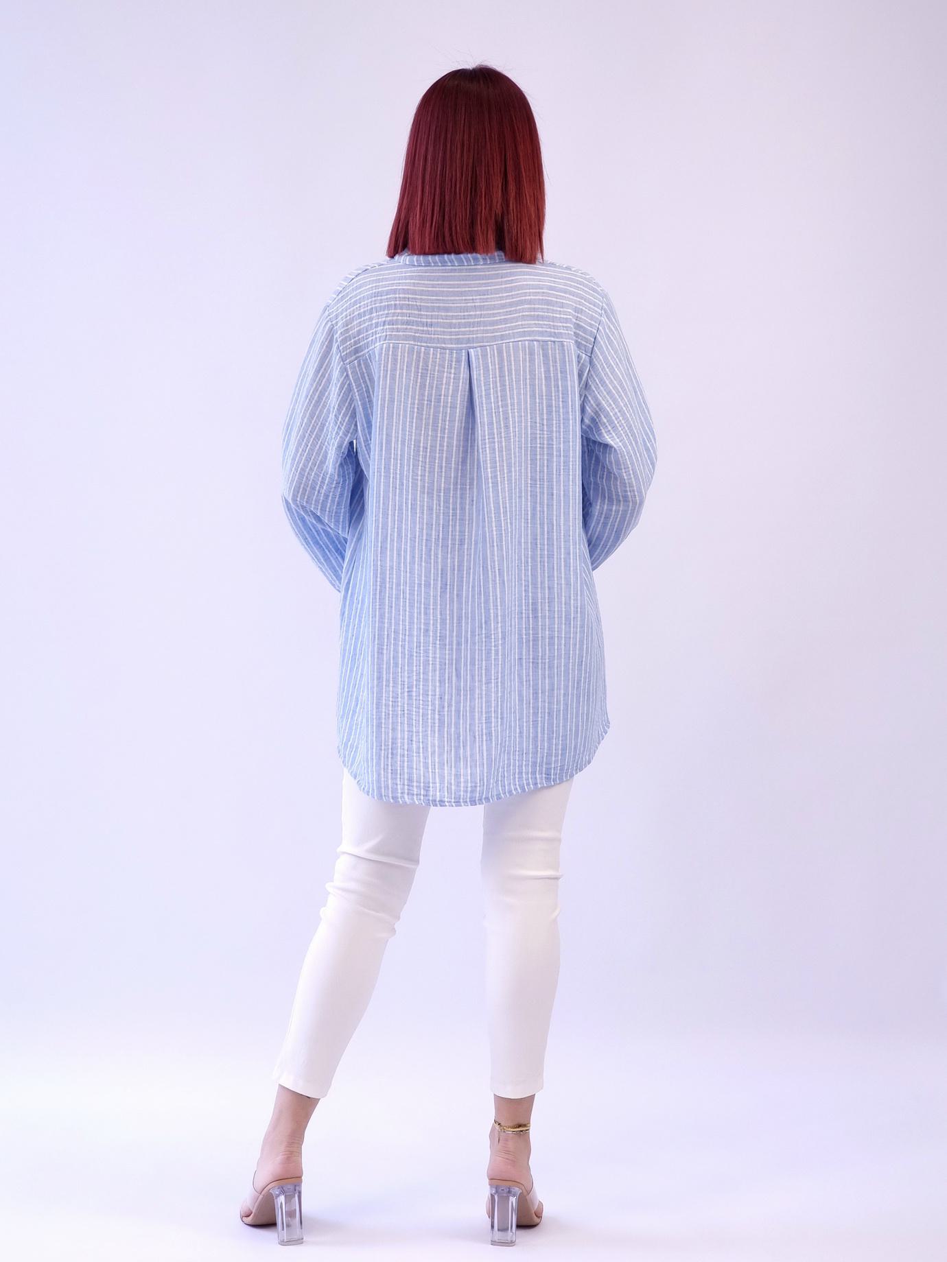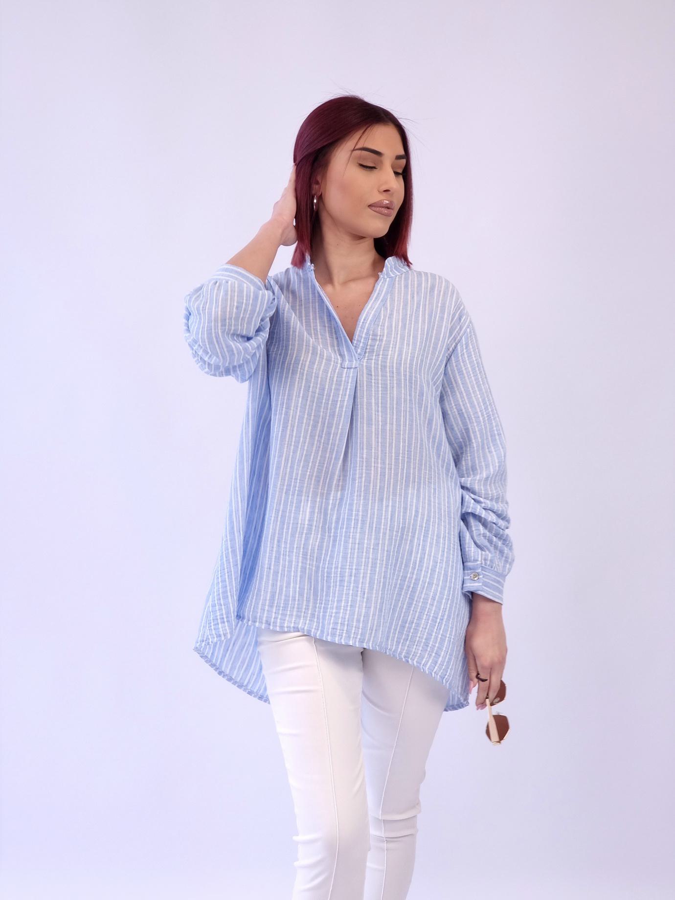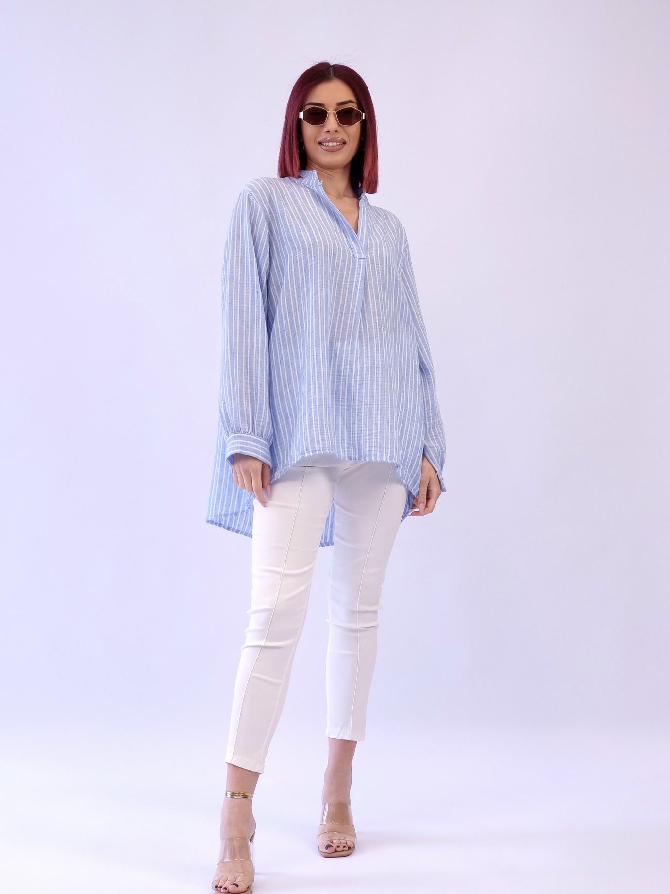 Πουκαμίσα ασύμμετρη ριγέ λινό – Σιέλ