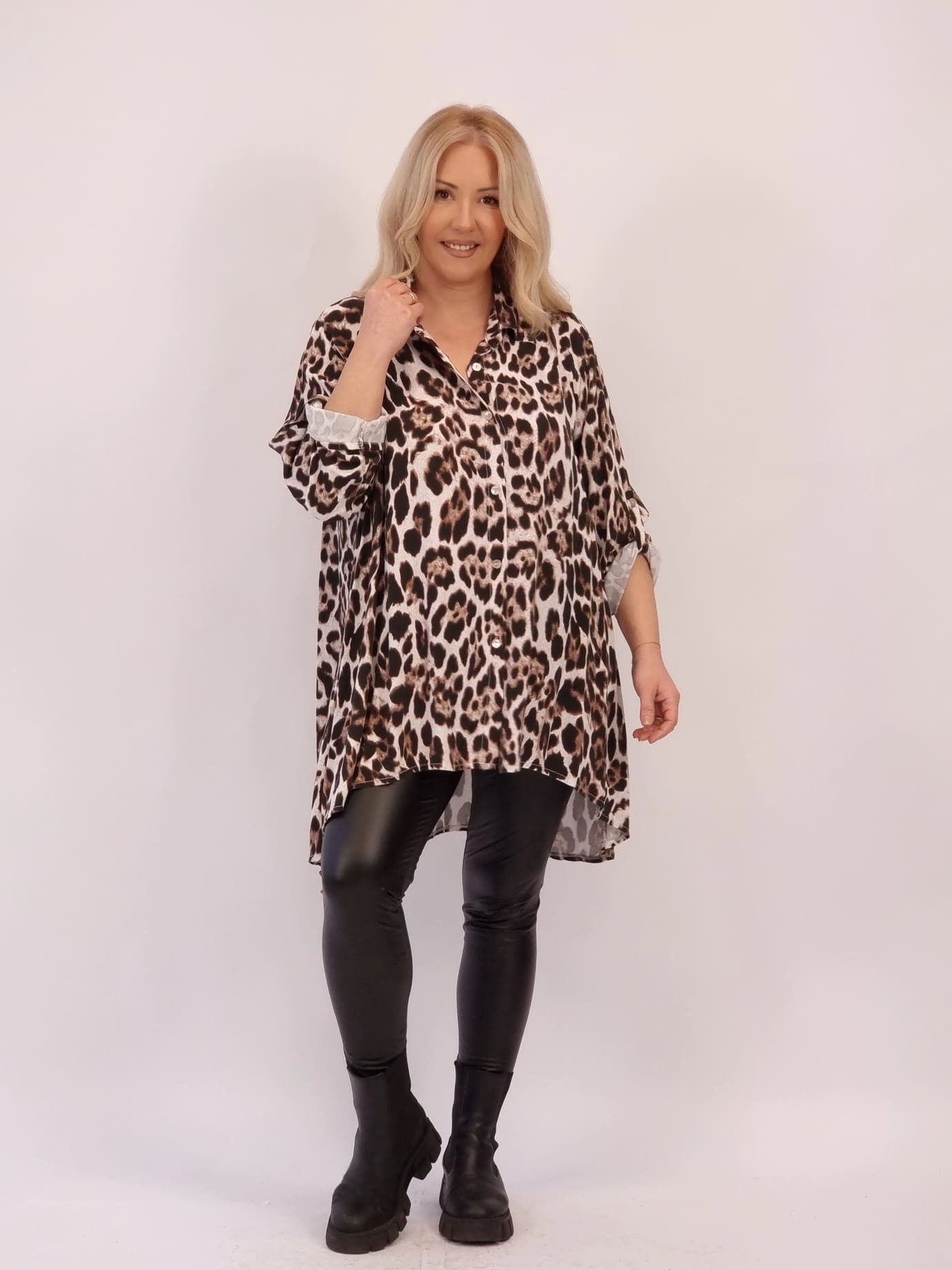 Μακριά πουκαμίσα φούξια σε animal print, με άνετη γραμμή και κουμπιά μπροστά. Φοριέται άνετα σαν πουκάμισο ή σαν mini φόρεμα πάνω από κολάν και παντελόνια. Κομψή, άνετη και πολύ εύκολη στο styling.