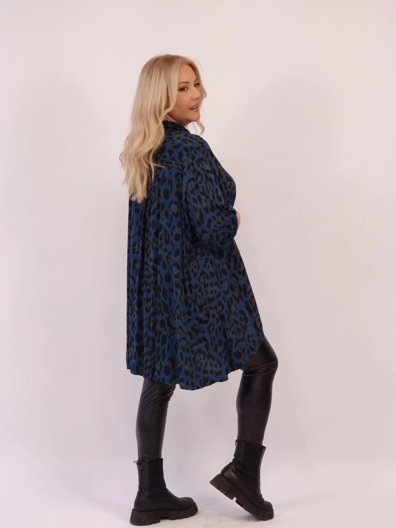 Μακριά πουκαμίσα φούξια σε animal print, με άνετη γραμμή και κουμπιά μπροστά. Φοριέται άνετα σαν πουκάμισο ή σαν mini φόρεμα πάνω από κολάν και παντελόνια. Κομψή, άνετη και πολύ εύκολη στο styling.